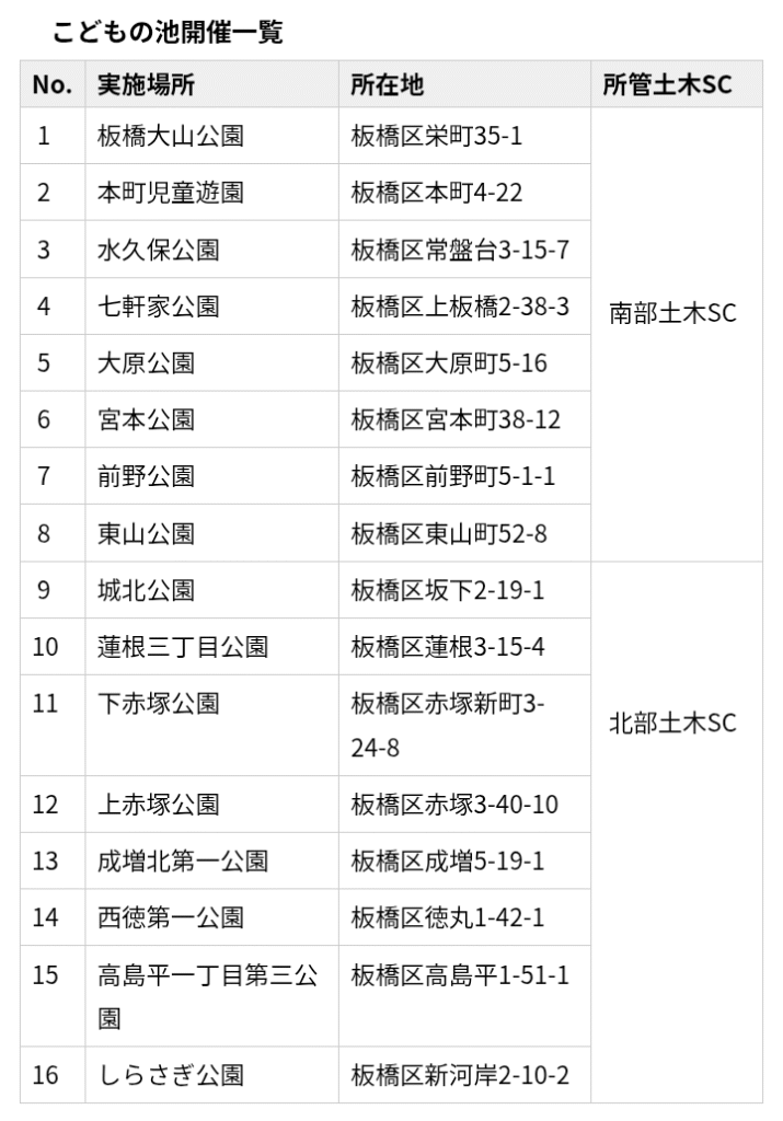 暑い夏はこどもの池・じゃぶじゃぶ池で水遊びもいいですよね!コロナの時期はなかなかできなかったのですが、2025夏は開催されるみたいですよ!