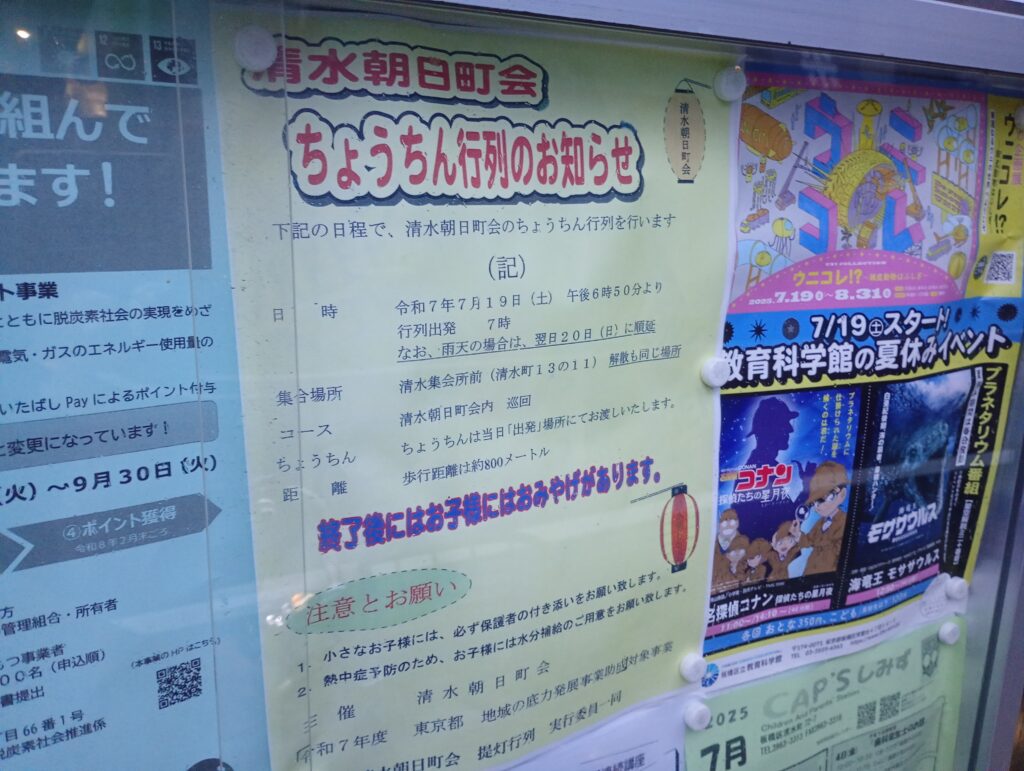 清水朝日町のお盆の恒例イベントとなる「提灯行列」が2025年7月19日㈯に開催されます。7月13日に迎え火があったので、19日は送り火ですかね。