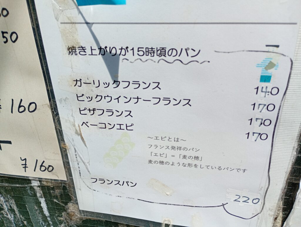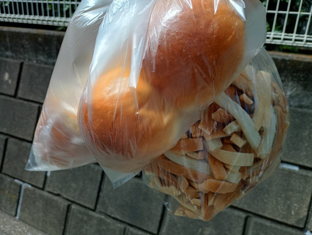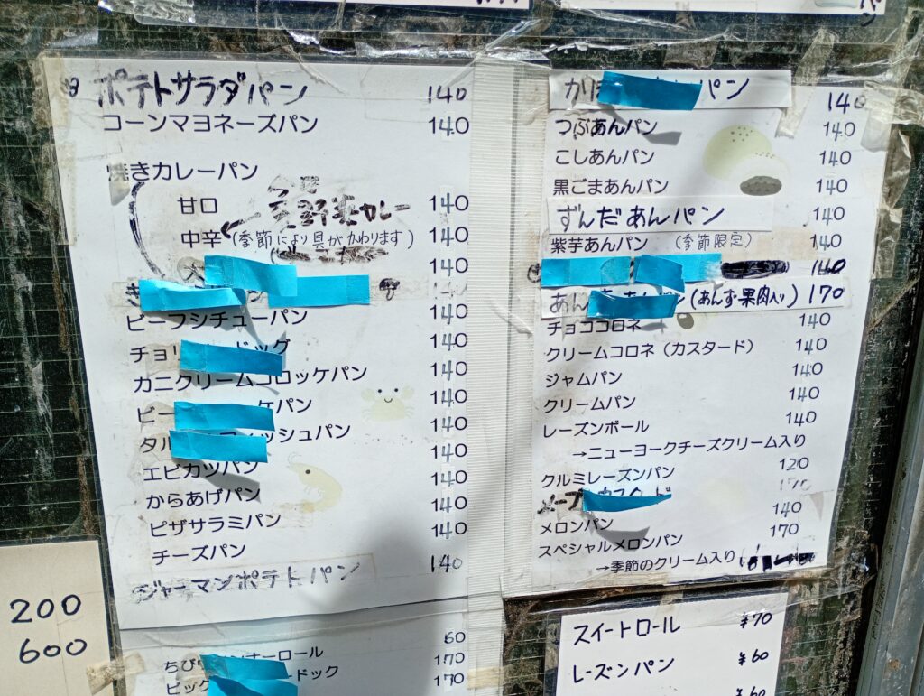 ちなみに、青いテープがついている商品は売り切れてしまったものになります。ちなみに、総菜パン以外に「パンの耳」100円や「バンズ」80円があります。