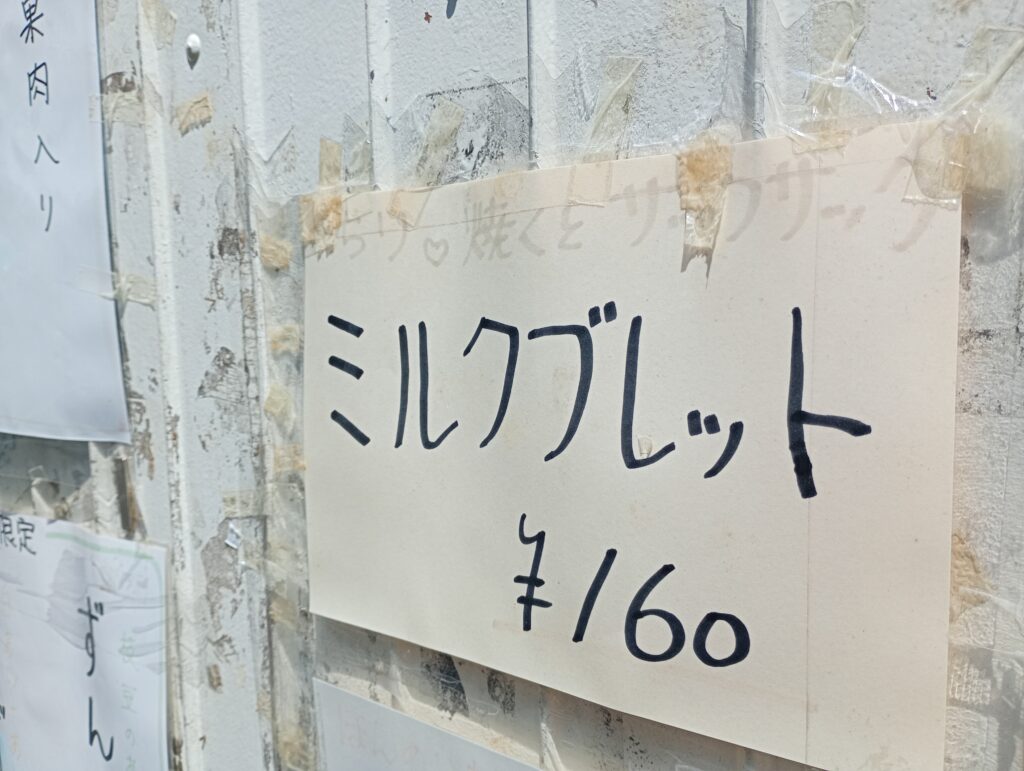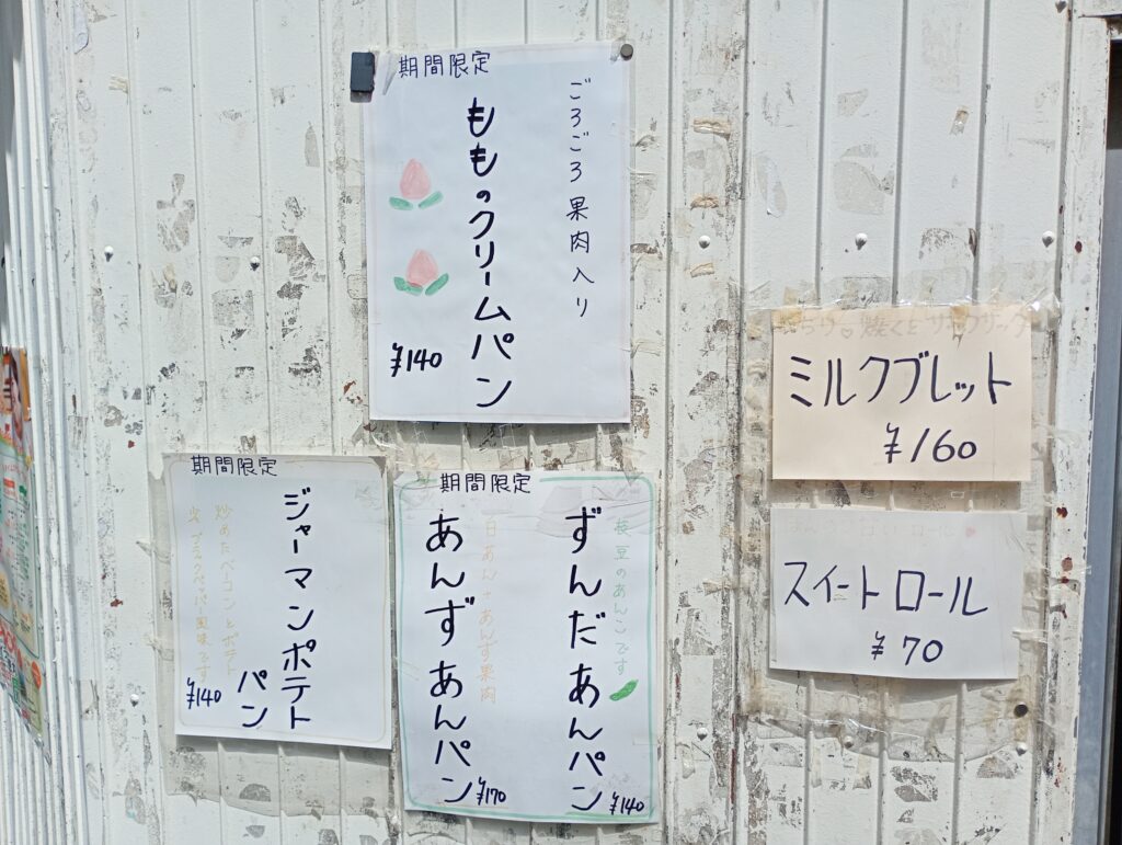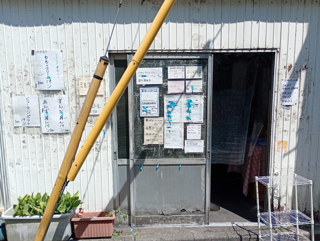 こちらが鈴木ベーカリーさんの直売所になります。工場の入口にはメニューがたくさん貼ってあります。