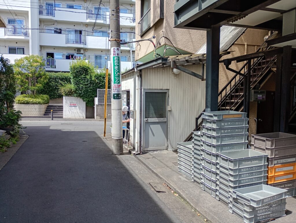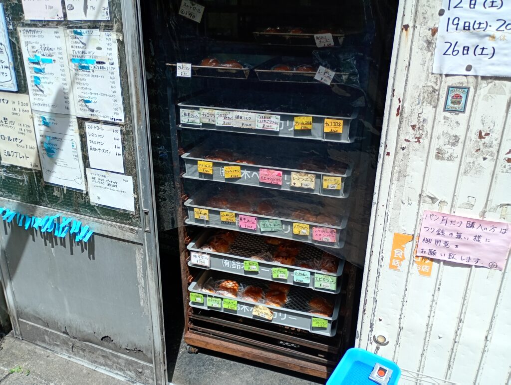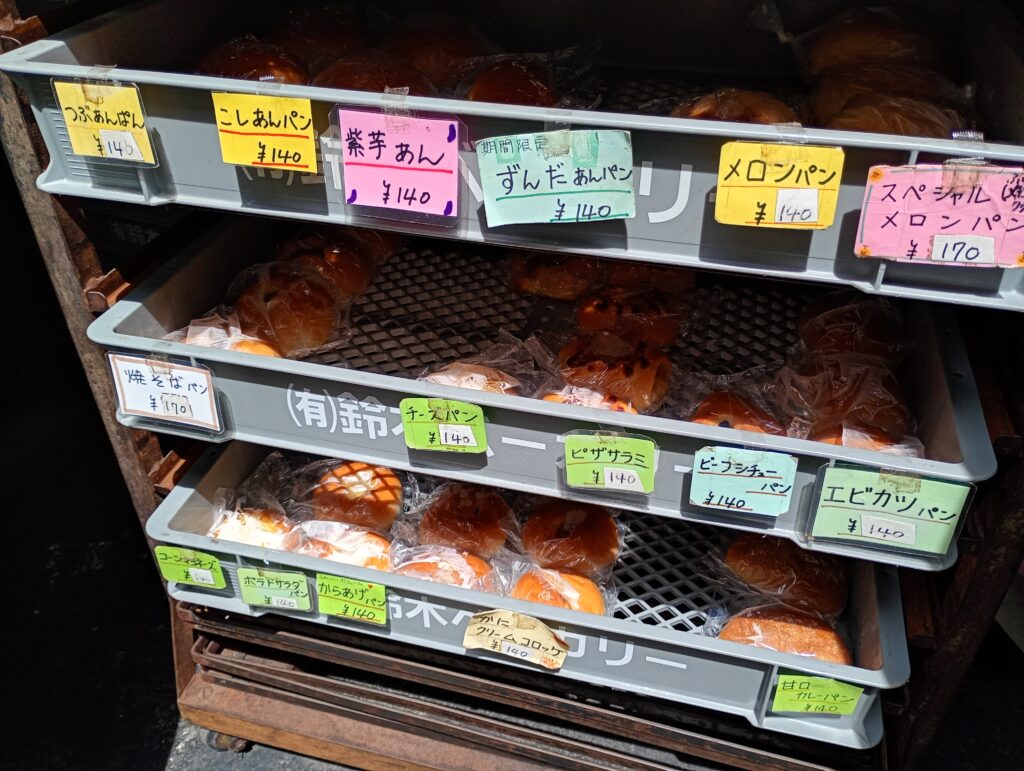 こちらが鈴木ベーカリーさんの直売所になります。パンの卸売をされているので、トレーが沢山重ねてありました。