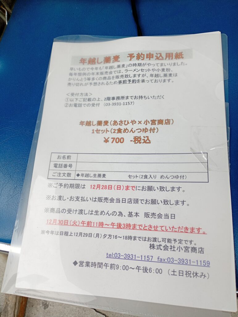 年末には年越そばの販売も行っています。