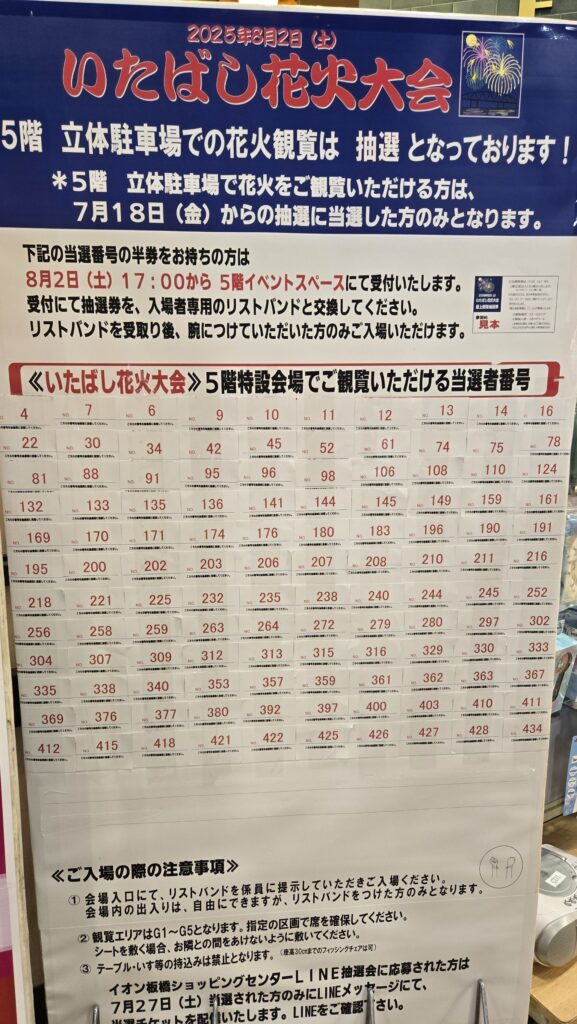板橋の夜を彩る一大イベント「第66回いたばし花火大会」が8月2日㈯に開催予定ですが、イオン板橋ショッピングセンター特設会場で見るというのもいいかもしれません。抽選に関する情報を簡単にまとめてみました。