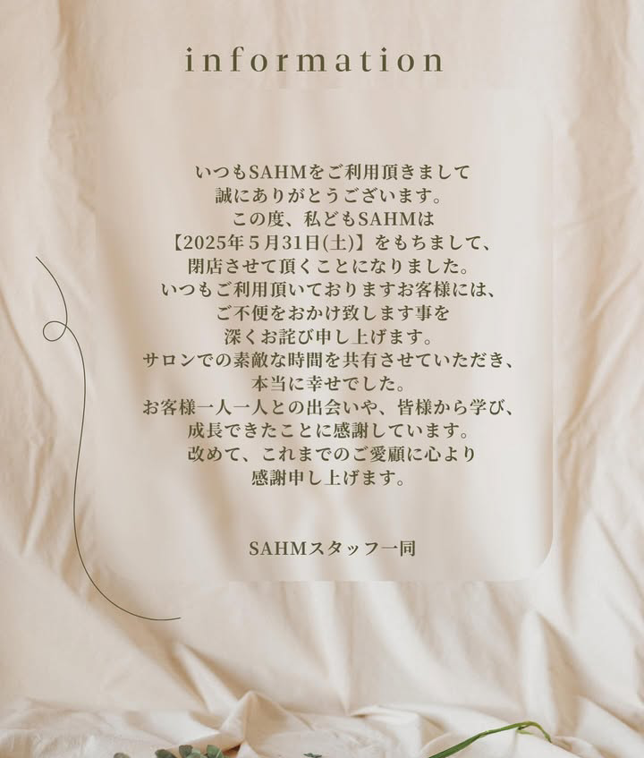 成増小学校の正門を出て川越街道方面に進んだ辺りにある「SAHM(シャーム)」さんが閉店となりました。