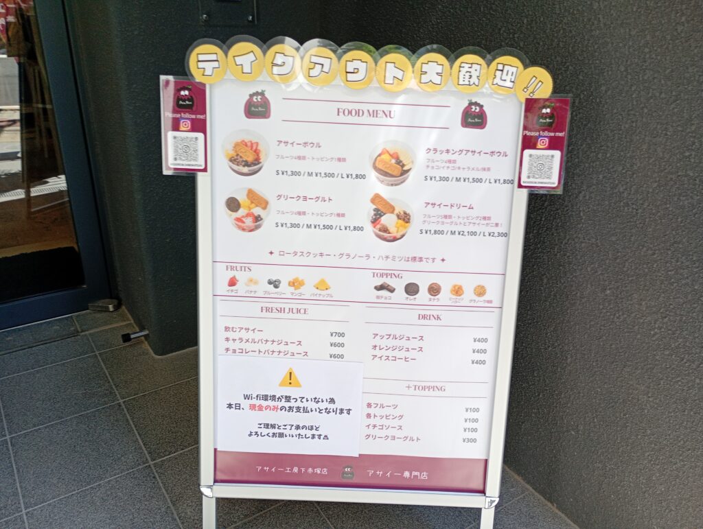 アサイー工房はフランチャイズ展開するアサイーボウルの専門店みたいですね。500万円以下の低資金でオープンでき、オペレーションも難しくないことから全国的に開業しているみたいです。直近でも神奈川県の日吉や埼玉県の久喜などで開店情報が出てきます。