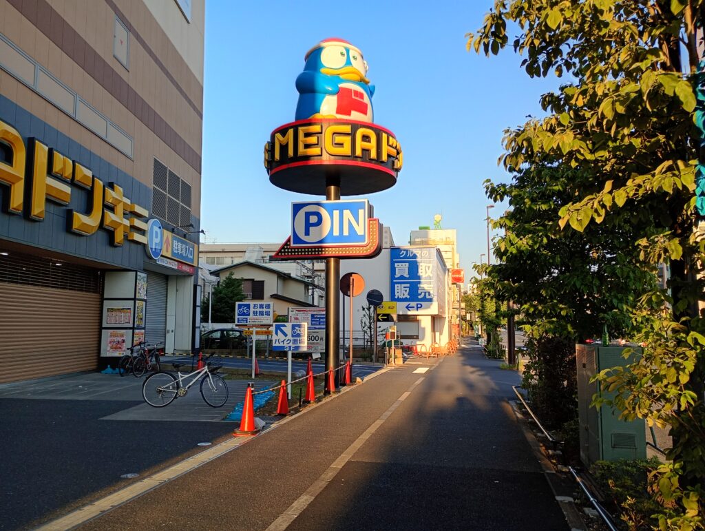 志村三丁目駅から歩いて環八に出ると、MEGAドン・キホーテ志村店のドンペンが見えますが、その横に中古車販売「ネクステージ板橋店」がオープンするみたいです。