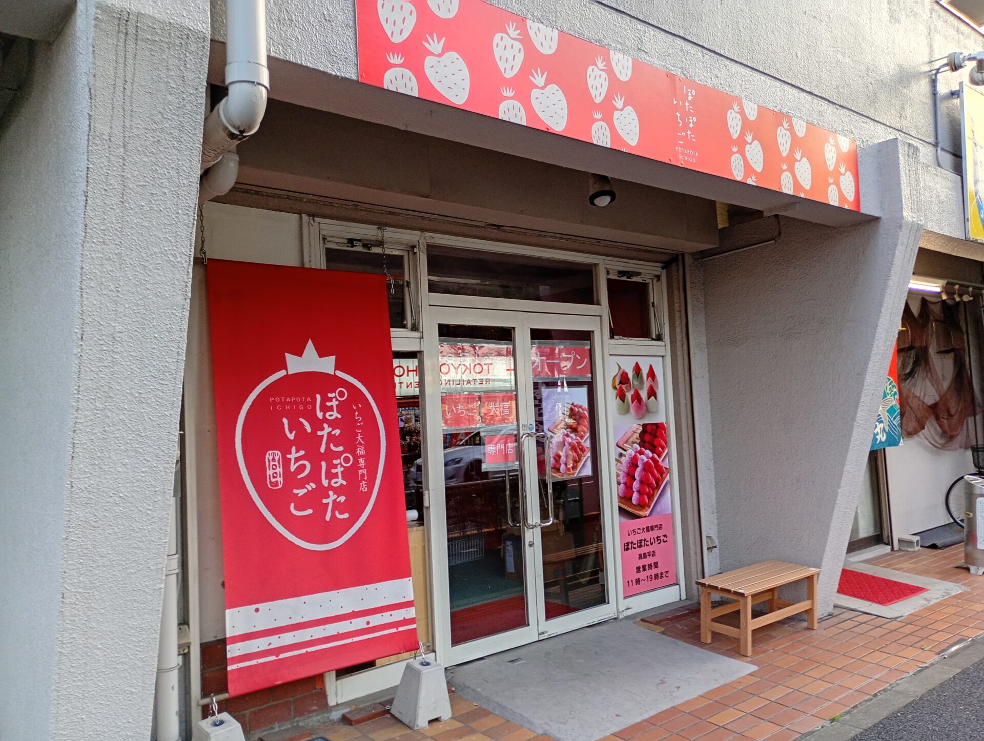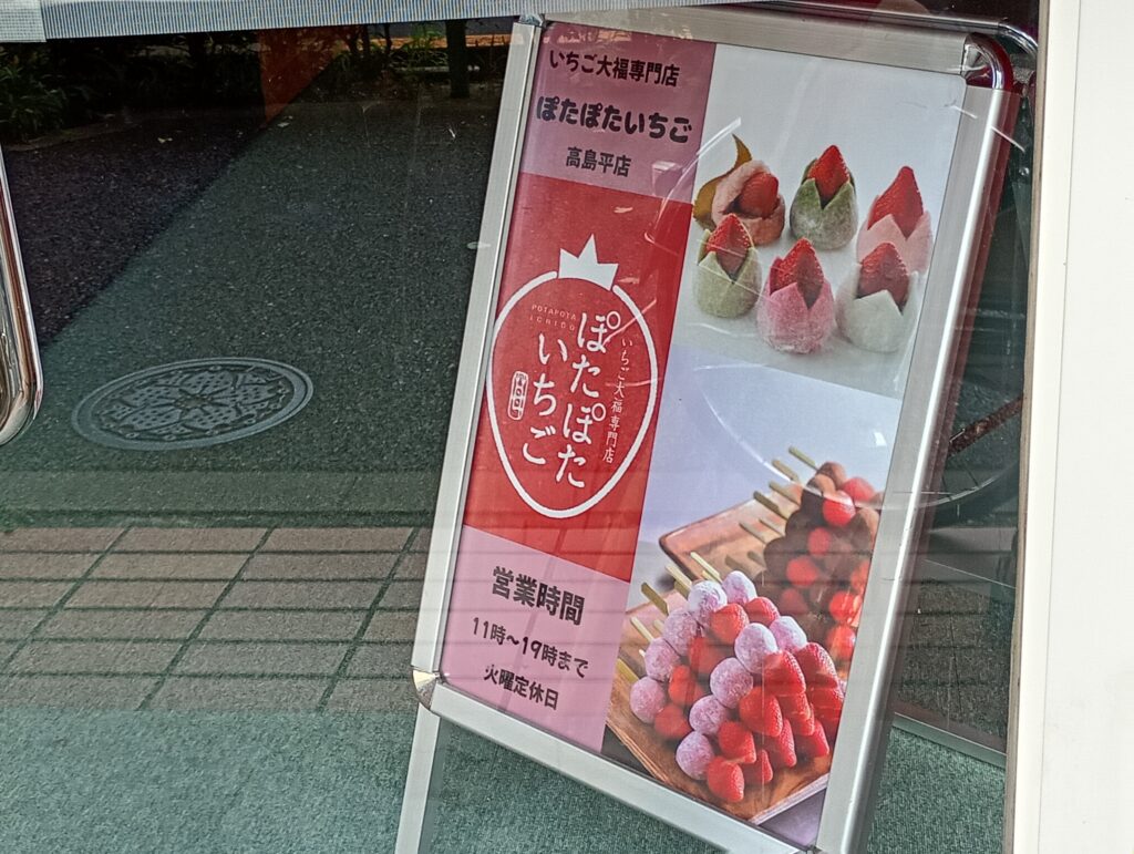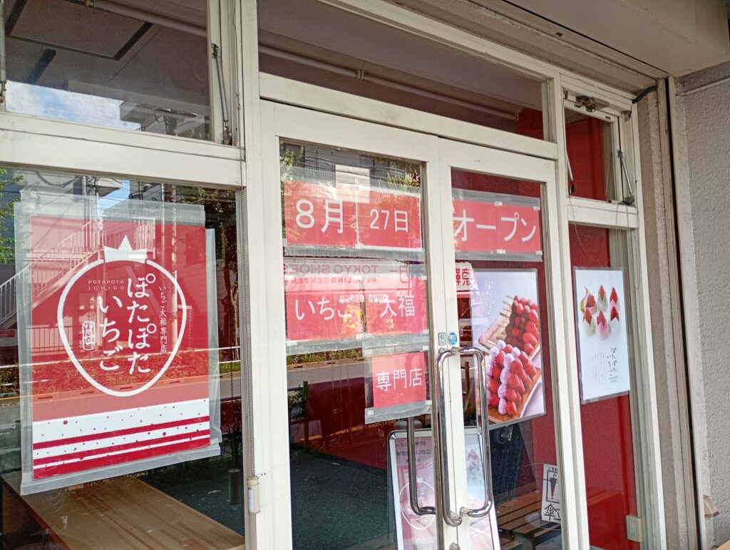 都営三田線高島平駅北口方面の市場通り沿いに2025年8月中旬にいちご大福専門店「ぽたぽたいちご」さんがオープン!