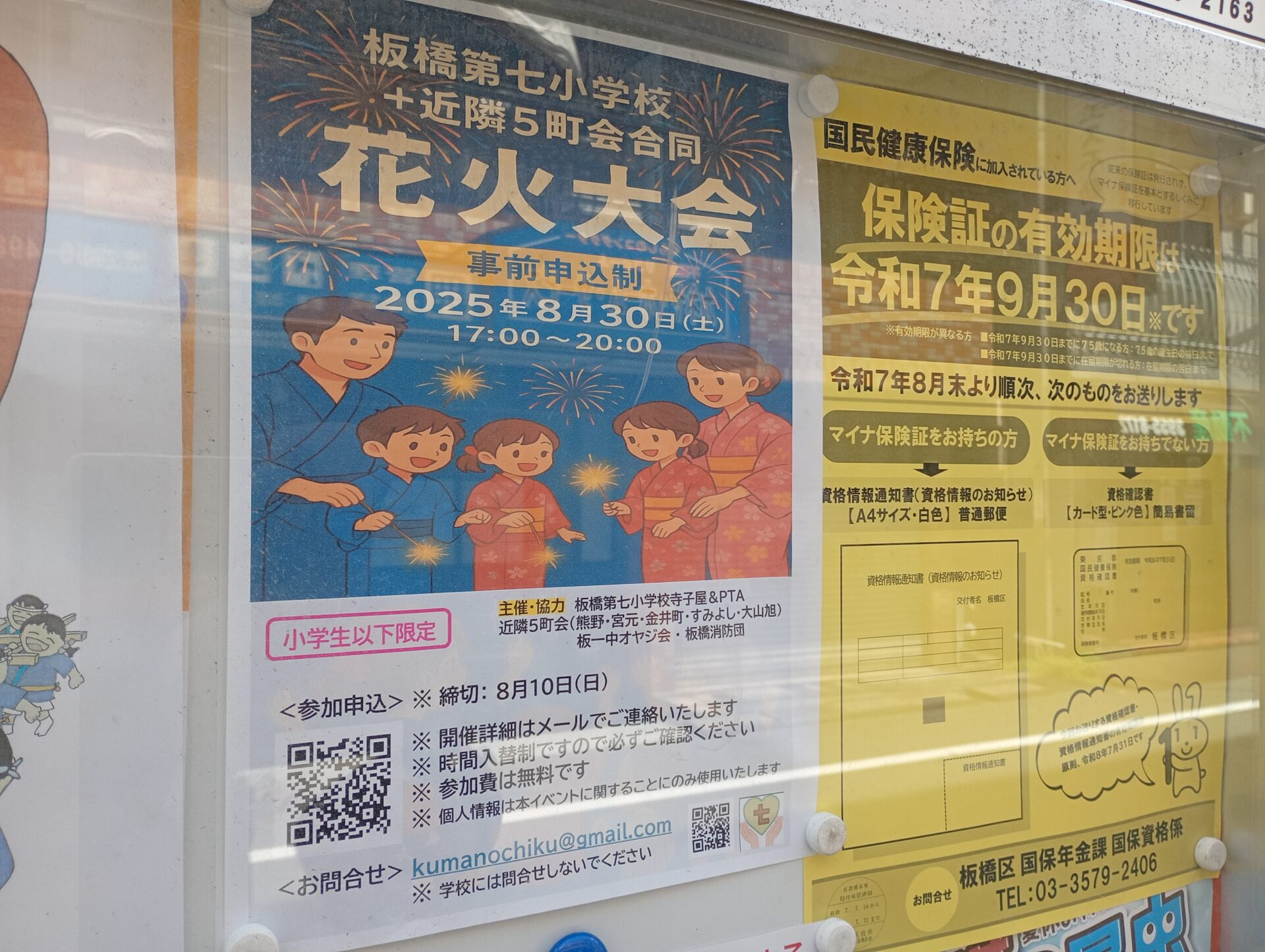 2025年8月30日㈯17時板橋第七小学校にて花火大会が開催予定です。事前申込制となっておりますので、ご参加される方は8月10日㈰までにお申込みが必要となるそうです。