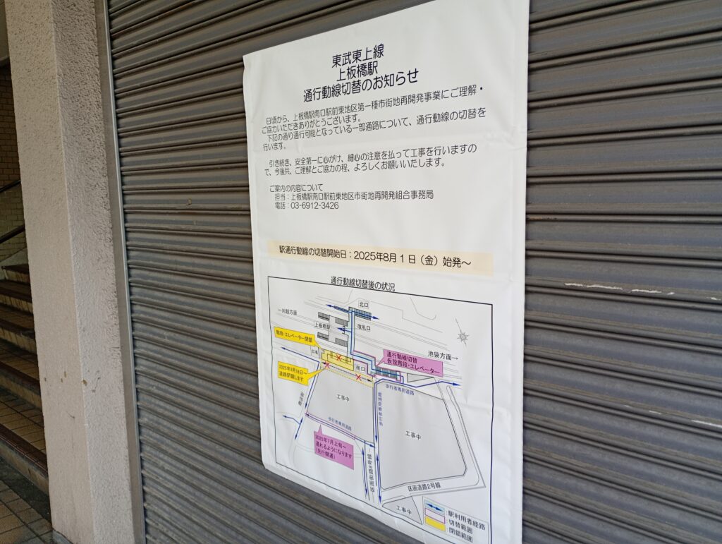 2025年8月1日㈮始発から東武東上線上板橋駅の再開発中の南口が大きく変わりました。早速現地に行ってきました。