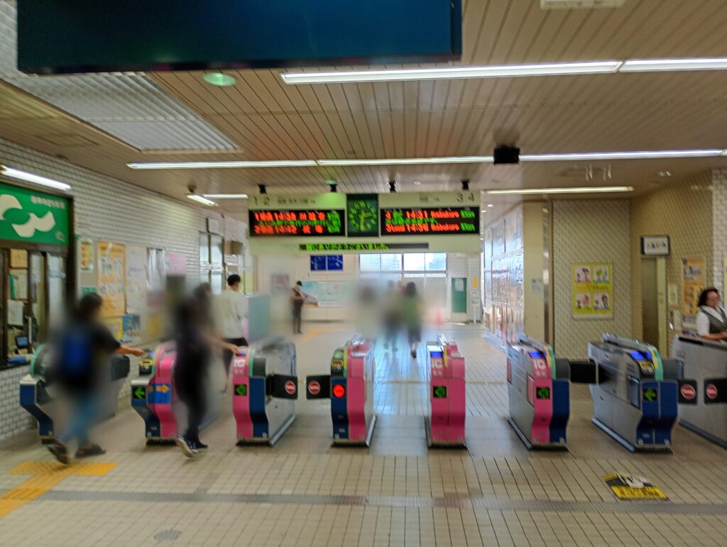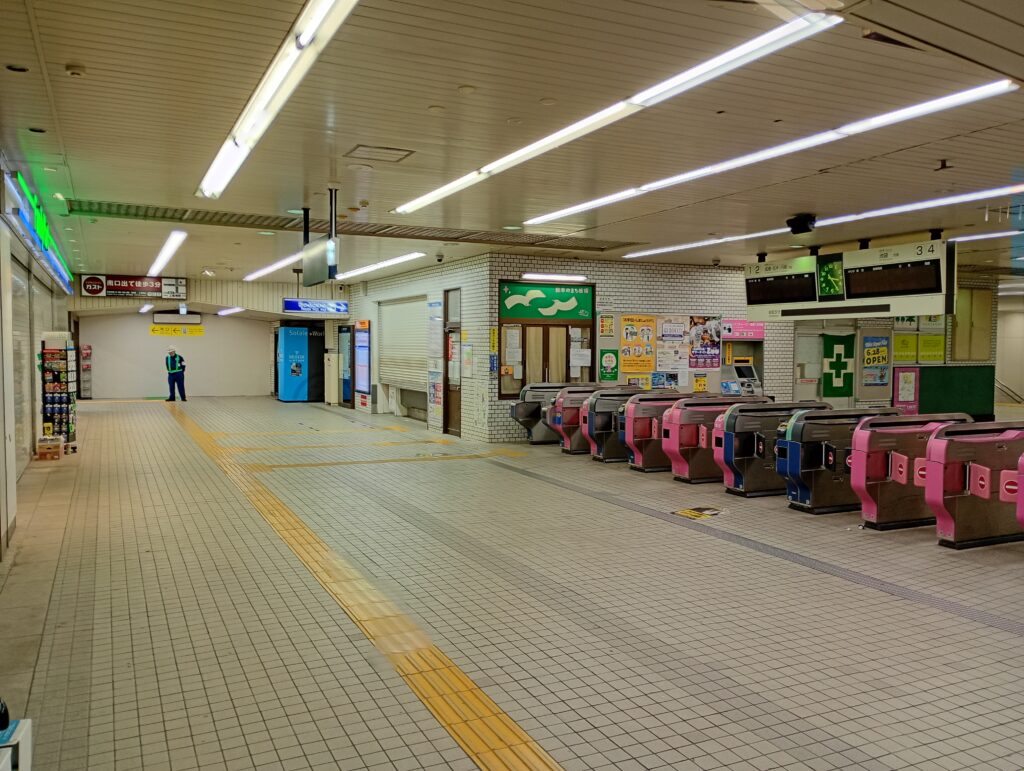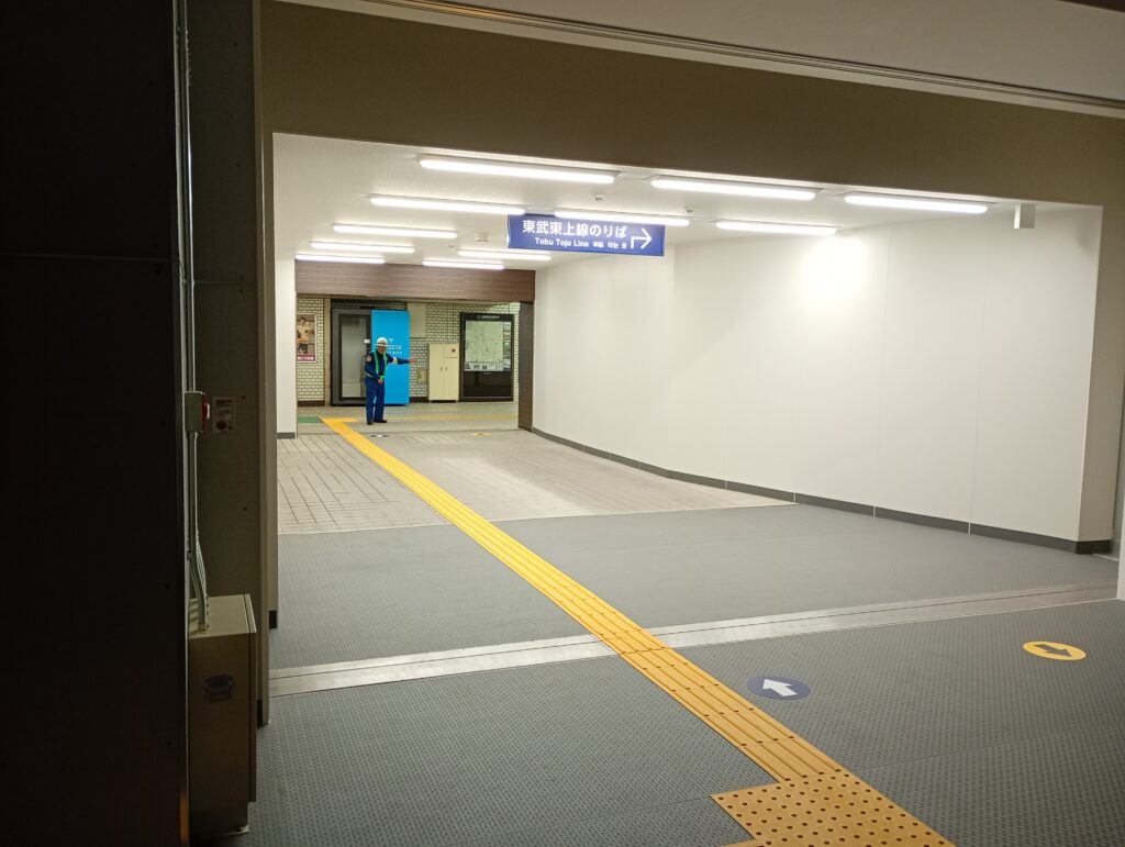 改札は従前と同じですが、導線がすっかり切り替わっています。ちなみに、上板南口銀座商店街に続く階段については、現在の建物が取り壊され、新しいビルが建設された後に復活する予定だそうです。