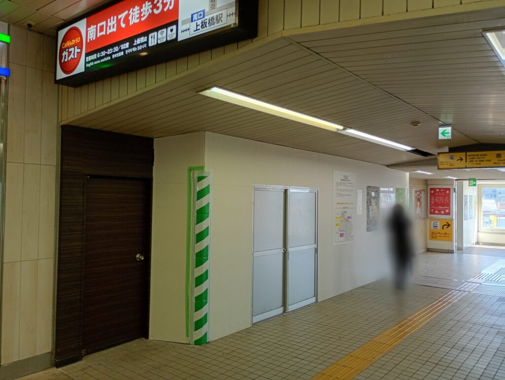 今までは上板南口銀座商店街に通じる入口がありましたが、こちらの入口は2025年7月31日木曜日をもって閉鎖されます。