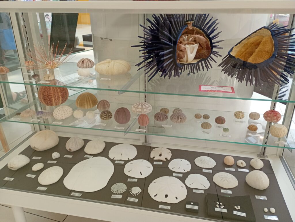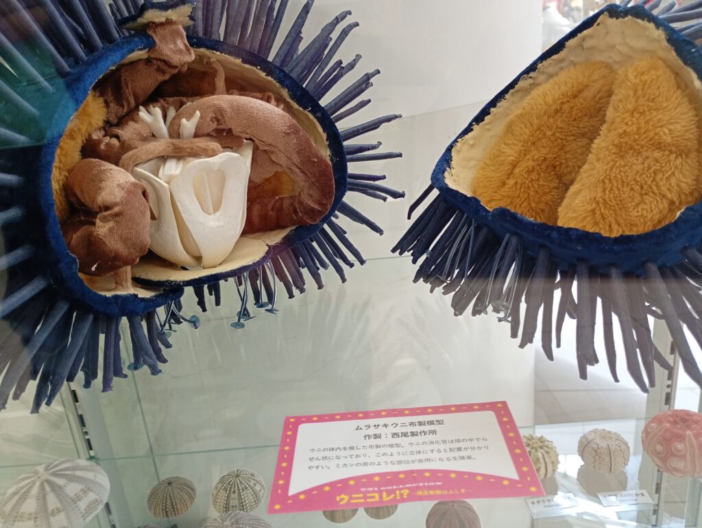 ウニの装飾品や、ウニ殻の展示がありました。展示をしているクワちゃんのウニ愛が溢れています。