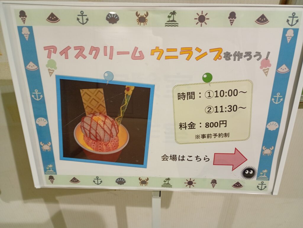 諸外国のウニの展示やさらには「ウニ」に関連するイベントも多数催されているそうです。訪問した日は「アイスクリームウニランプを作ろう」が開催されていました。