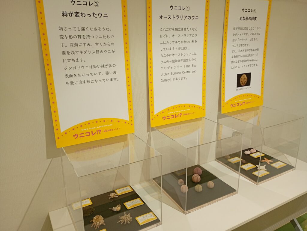 この企画展では、「食べるだけではないウニの魅力」をテーマに、ウニの生態や多様なウニの殻の美しさ、そしてウニを愛する人々(ウニャー)の世界を紹介しているそうです。