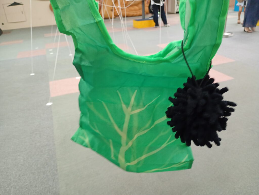 入り口を入ると「ウニコレ」の展示が並んでいました。「ムラサキウニ布製模型(制作:西尾製作所)」となっています。すごい精巧にできていますし、これが布でできているというのもすごい。