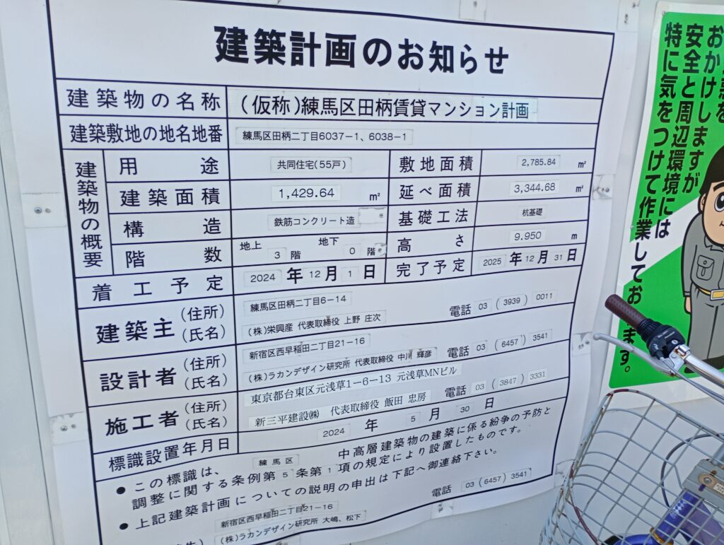 建設種は株式会社栄工業上野庄次さんですので、田柄スイミングの経営者の方が賃貸マンションを建設されるようですね。