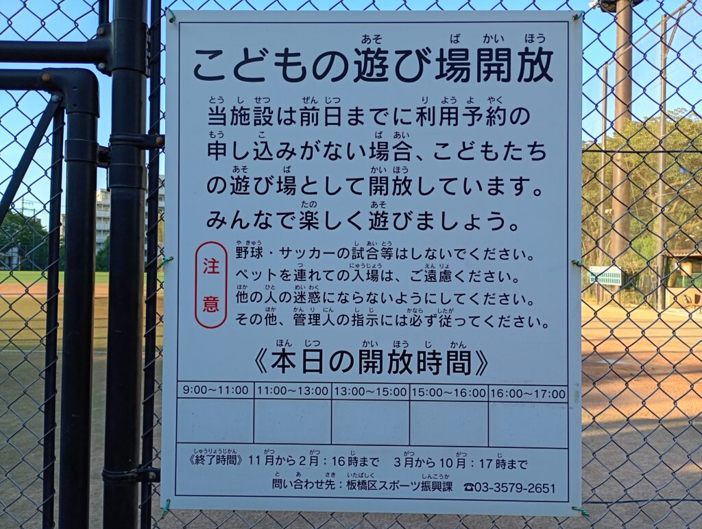 野球場も併設されており、地域の野球チームの練習や試合が行われています。野球場が使用されていない時間帯は解放されています。