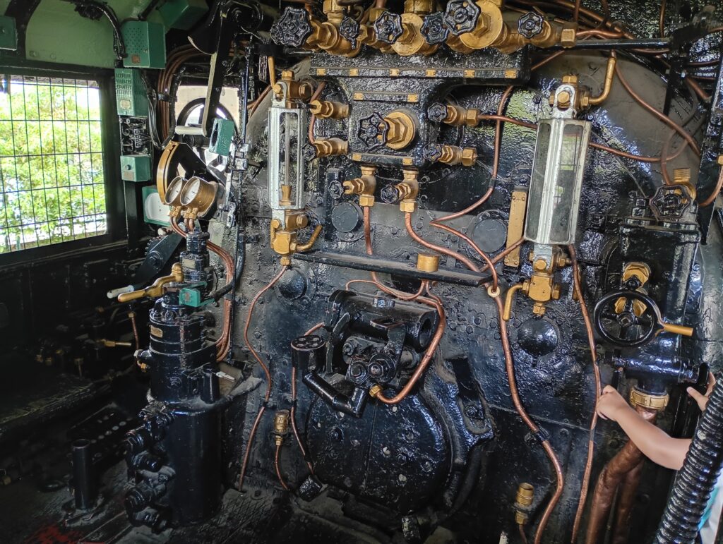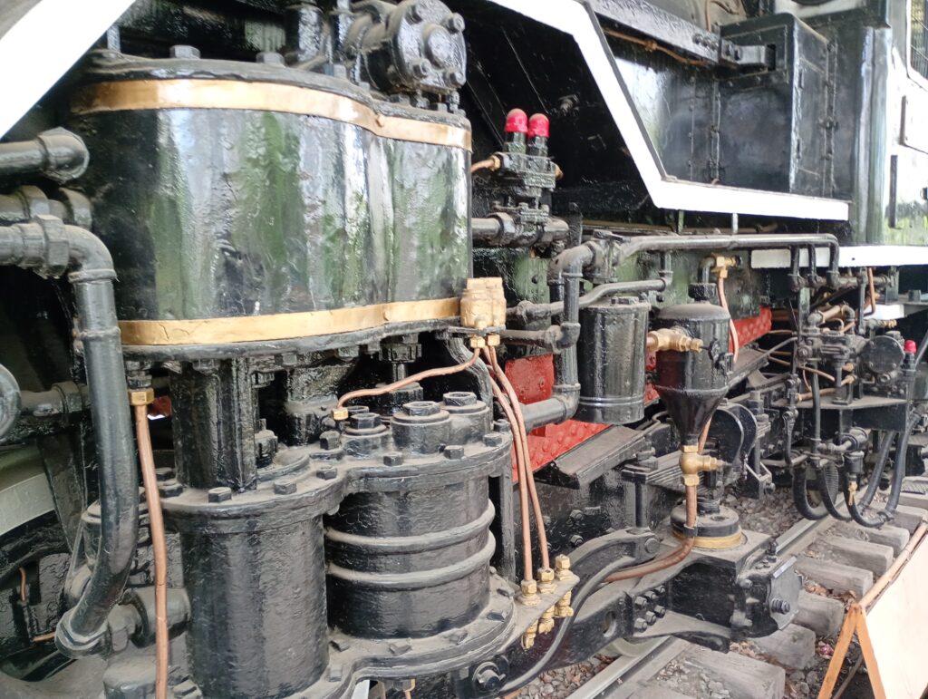 機関車の機関についても見ることができます。石炭などを燃やして水を沸かし、発生した高圧蒸気でピストンを動かし車輪を回す仕組みなっているのですね。