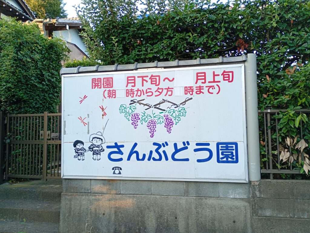毎年夏にぶどう狩りで長蛇の行列ができるほどの大人気のさんぶどう園さんは竹の子公園のすぐ目の前にあります。毎年8月に入ると収穫に関する情報をXで流したりしていますので、よかったらご覧になってはいかがでしょうか。