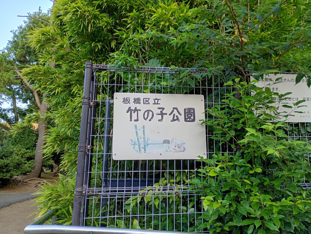 竹の子公園は板橋区の大門という地区にあります。都営三田線の新高島平駅と東武東上線の下赤塚駅の中間に近い地点にあり、農地や神社等がありゆったりした時間が流れている印象です(最近では住宅街化も進んでいます)。