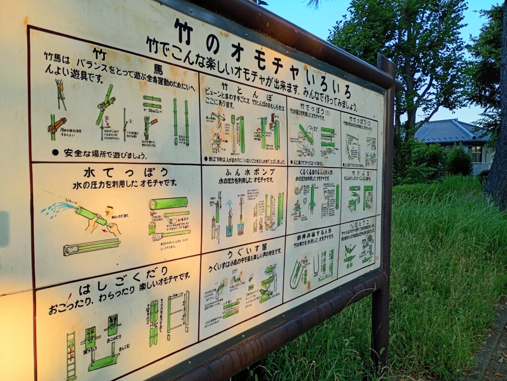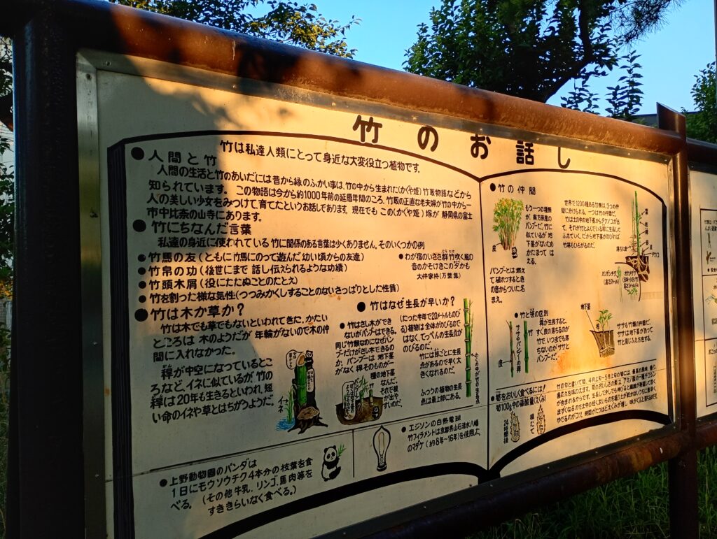 広場には竹にちなんだお話しや竹のおもちゃに関する掲示があります。
