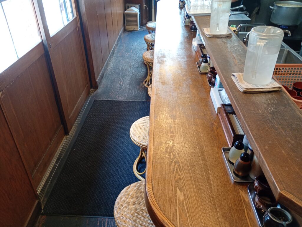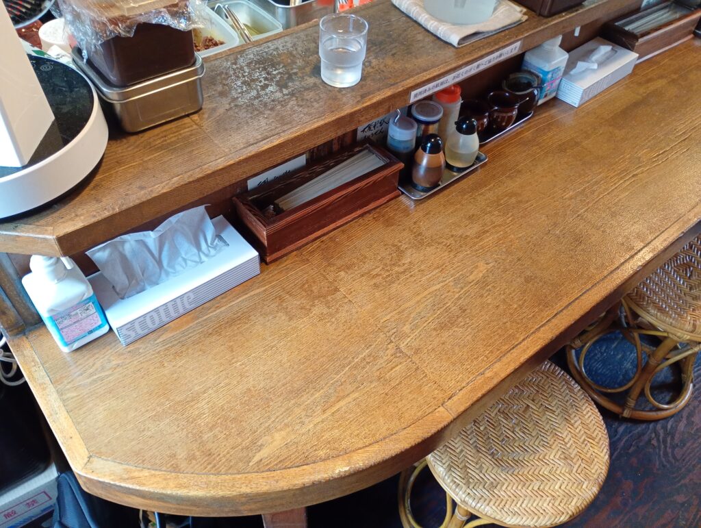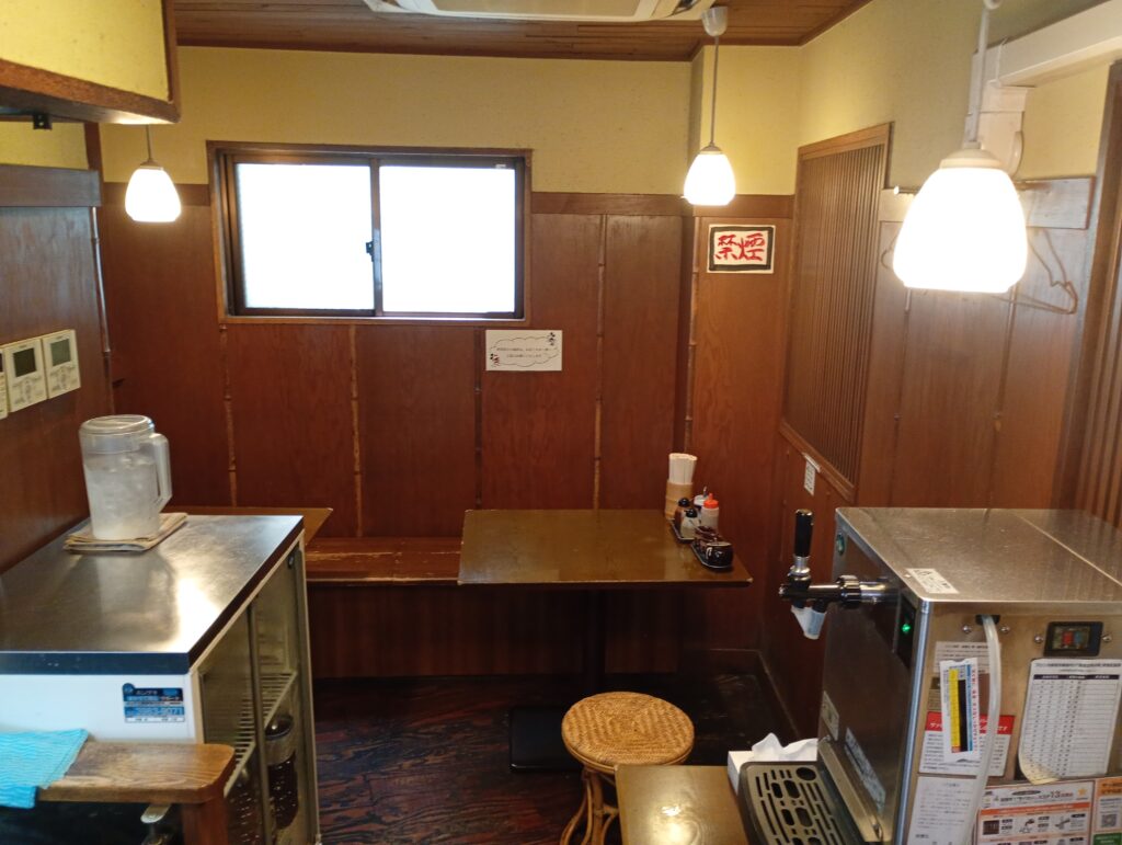 席はカウンター6席あります。テーブル席は2席ありました。店内は比較的ゆったりとして清潔感があり、「女性一人でも気軽に入れる」という声が多いそうです。また、テーブル席もあり、家族連れでも利用しやすい工夫がされています。