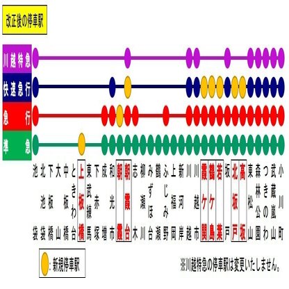 快速急行は朝霞台駅に新規停車し、現在停車している志木駅を通過とするほか、川越~小川町間で各駅に停車することになります。東武東上線の埼玉方面も最近では住宅地としての開発が進んでいることが停車駅の増加の背景にあると推察されます。