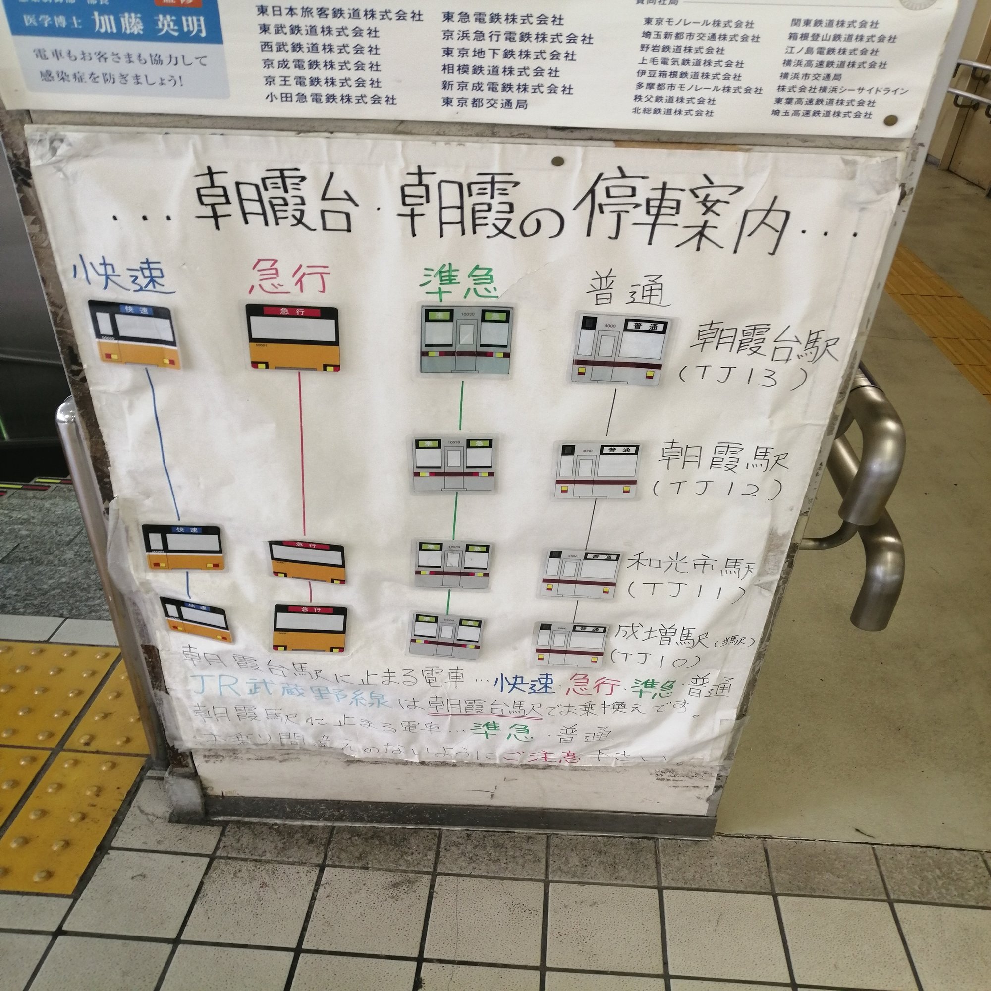 「TJライナー」、「川越特急」、「快速急行」、「急行」、「準急」、「普通」と6つの種類の電車が走行し、「普通」以外は池袋の次の停車駅が成増となっています。