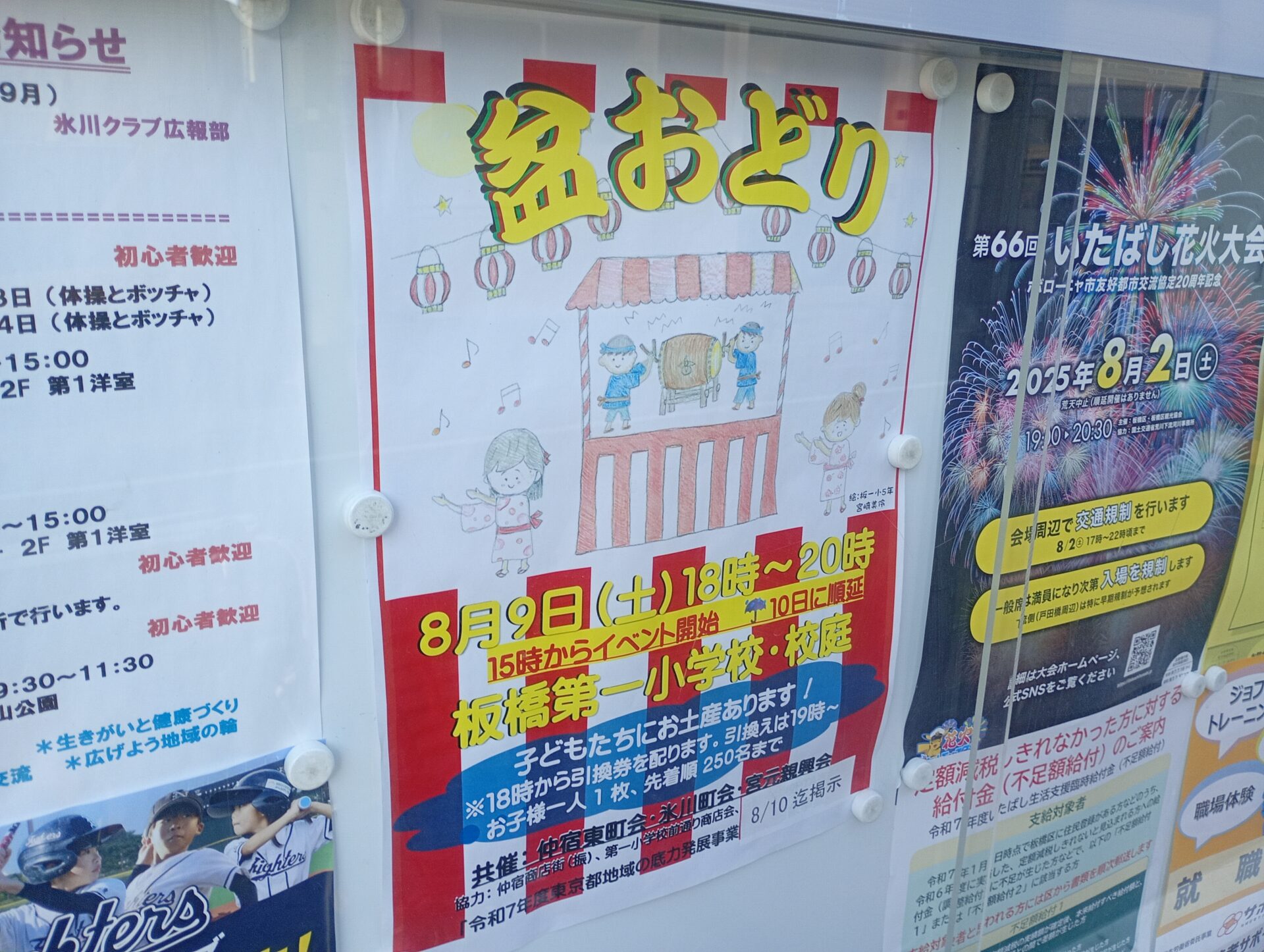 2025年8月9日㈯18時板橋第一小学校にて盆踊り大会が開催されます。先着250名のお子さんにはお土産があるそうです。18時から整理券が配布され、19時に引き換えできるそうですよ!ぜひ、みなさん足を運ばれてみてはいかがでしょうか。