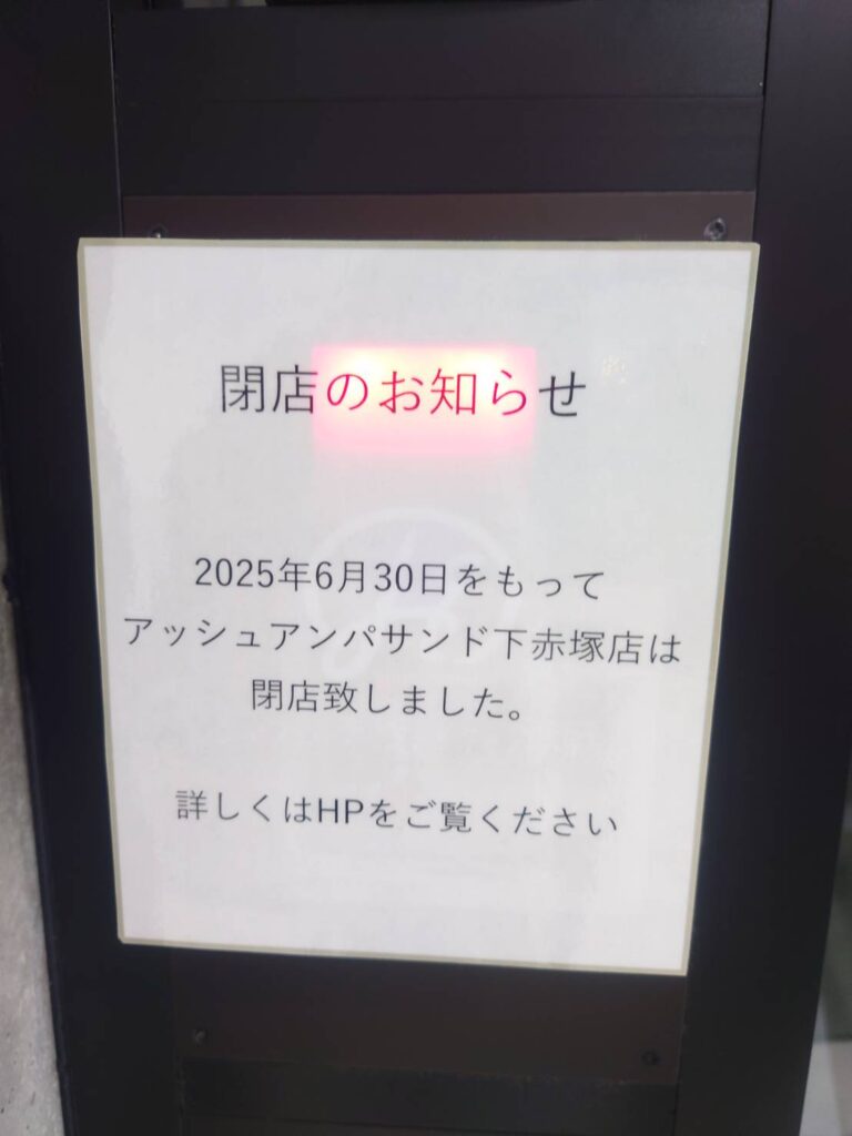 アッシュアンパサンド下赤塚店は、2025年6月30日(月)をもって営業を終了しました。2023年11月の開業以来、多くの利用者に親しまれてきましたが、諸般の事情により閉店が決定したそうです。