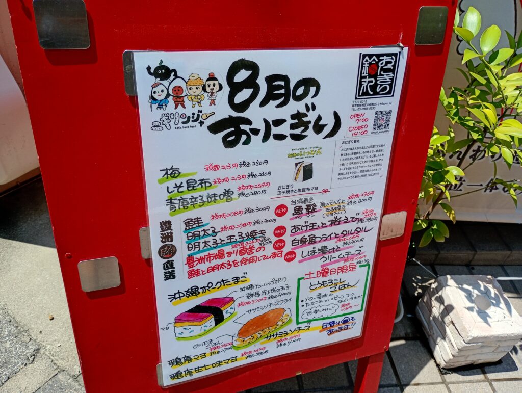 2025年8月中板橋の北口の商店街にある、板橋のいっぴんにも選定された名店「おにぎり 鈴丸」さんで子供のおにぎりを買ってきました。