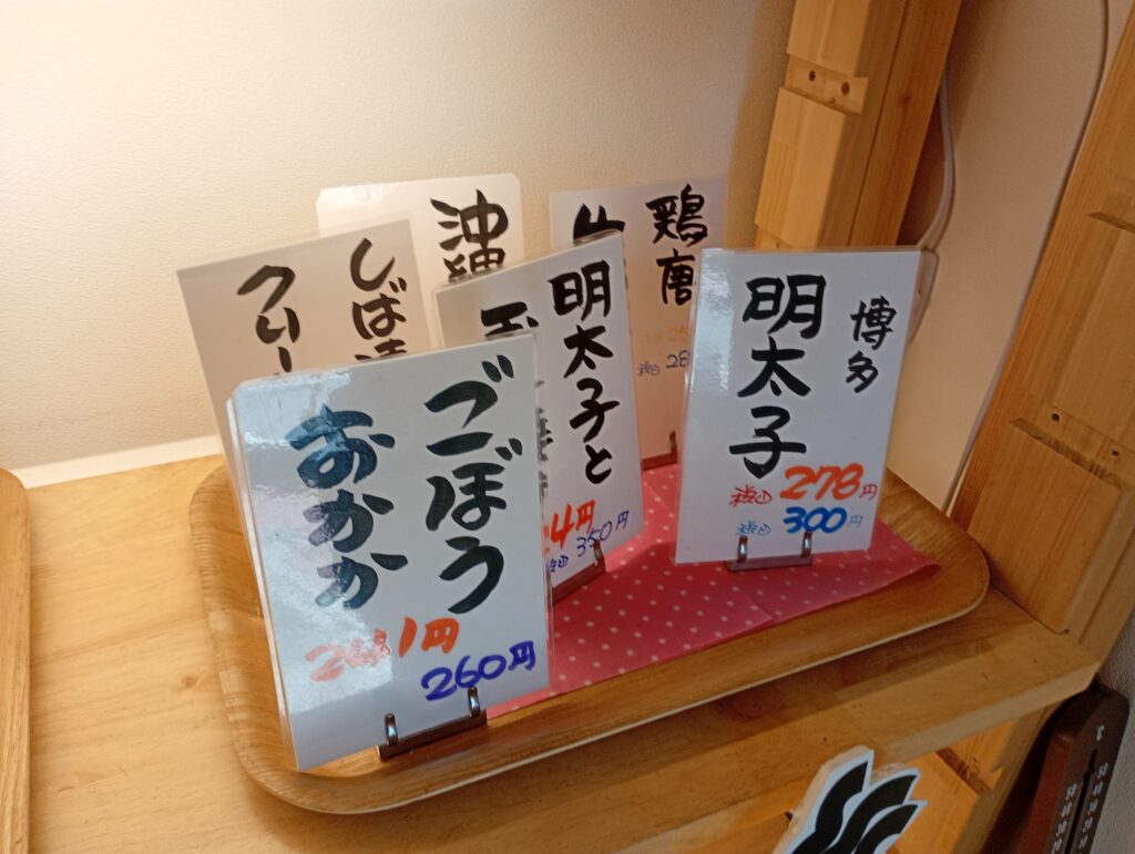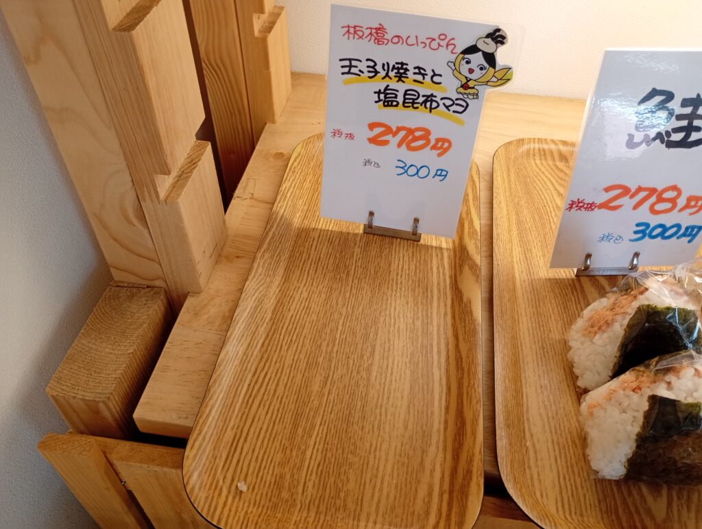 板橋のいっぴんにも選定された「玉子焼きと塩昆布マヨ」300円(税込み)は売り切れてしまっていました。また今度挑戦してみようと思います。他にもおいしそうなおにぎりが並んでおり、どれにしようか迷ってしまいますね。