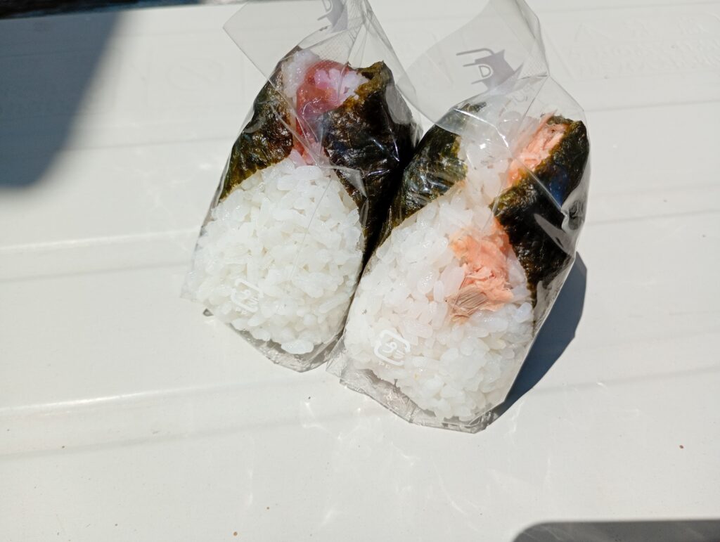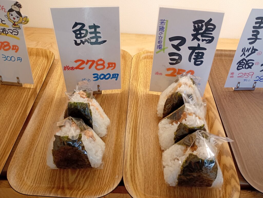 今回は、子供向けのお昼ご飯を購入しに来ましたので、お腹に優しそうな「鮭」300円、「梅」230円を購入してみました。子供はおいしそうにおにぎりをほおばっていました。