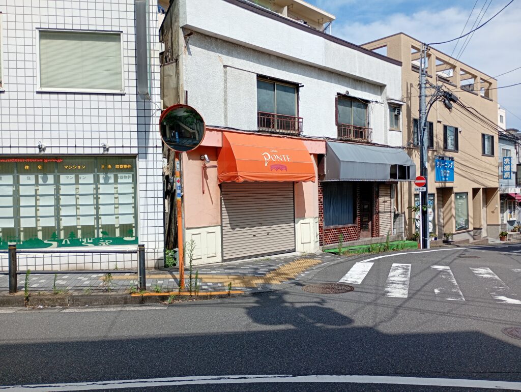 ponteは成増のロータリーを抜けてオリジン弁当の前の道(成丘通り)を下るとあります。お店はオレンジ色の外観です。