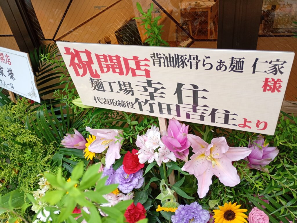 店頭には色々とお花がでていましたが、麺工場幸住さんからもお花が届いていました幸住さんの麺を使っているのですね。