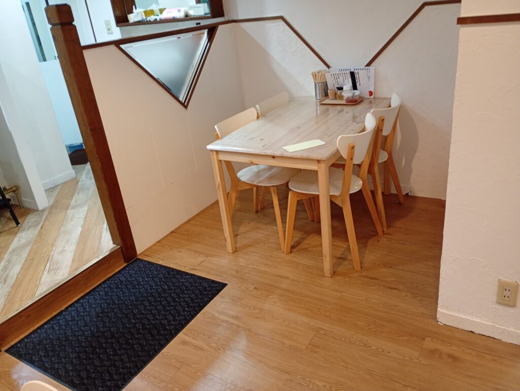 テーブルは二人掛けが2つと4人掛けが2つあり、かなり広々としています。