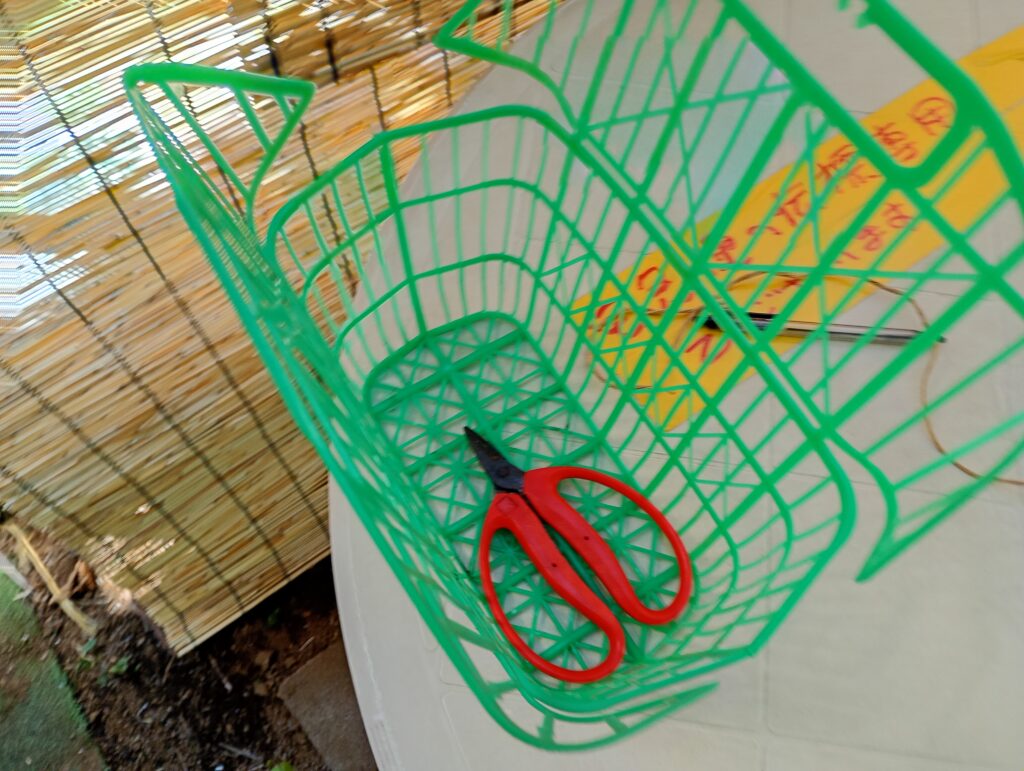 ぶどう園に入ると受付で「はさみ」と「かご」を受け取ります。ただ、受付の方は、収穫されたぶどうの会計作業に忙しそうですので、受付のそばに行ってスタッフの方に一言お声がけして、はさみとかごを自分で手に取る感じでした。
