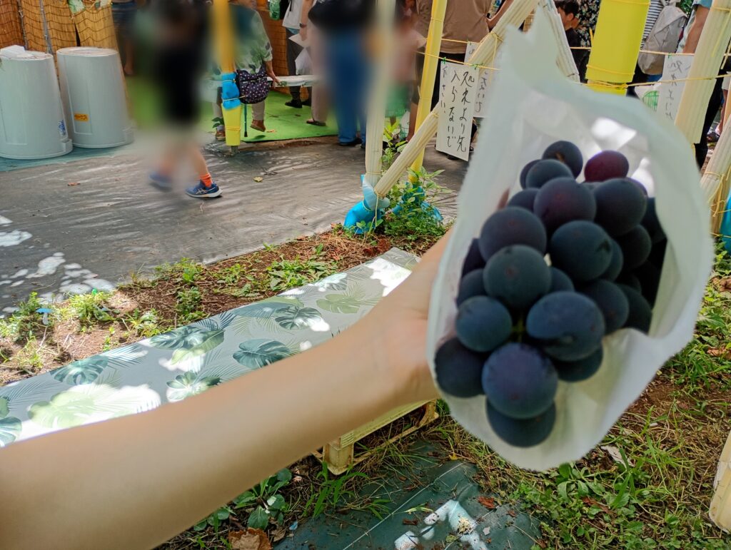 立派な巨峰が収穫できました。収穫できるのは巨峰(種有)のみとなり、1キロ1,600円となります。収穫体験もでき、スーパーで購入するよりもお買い得なので、とってもありがたいです。