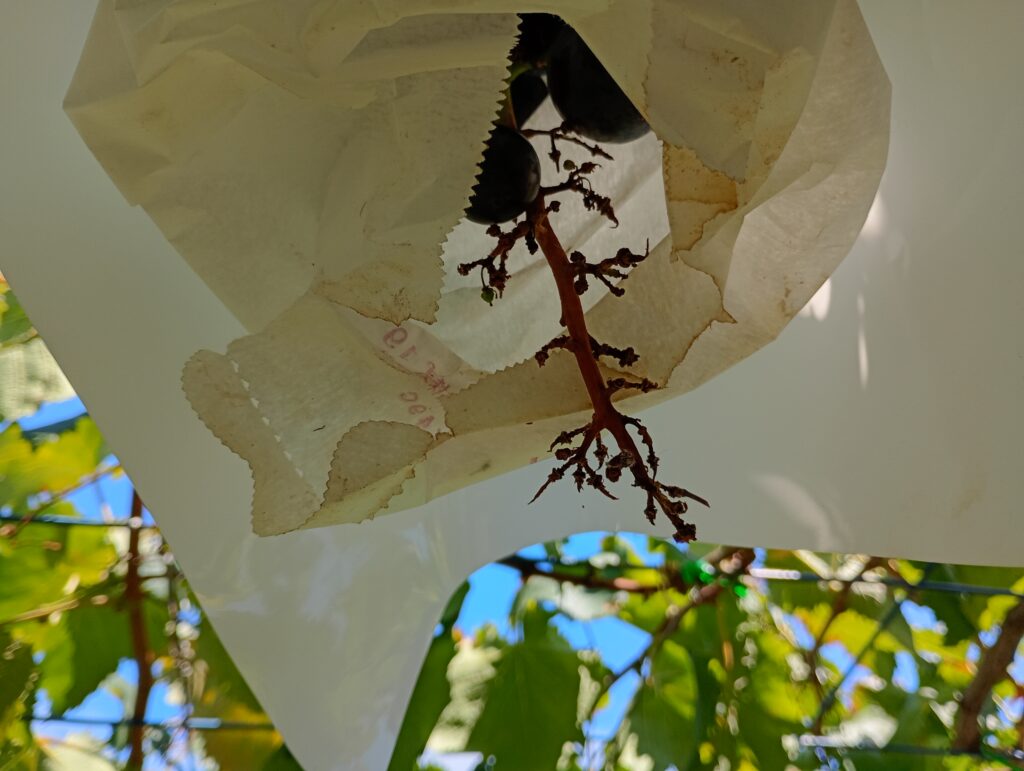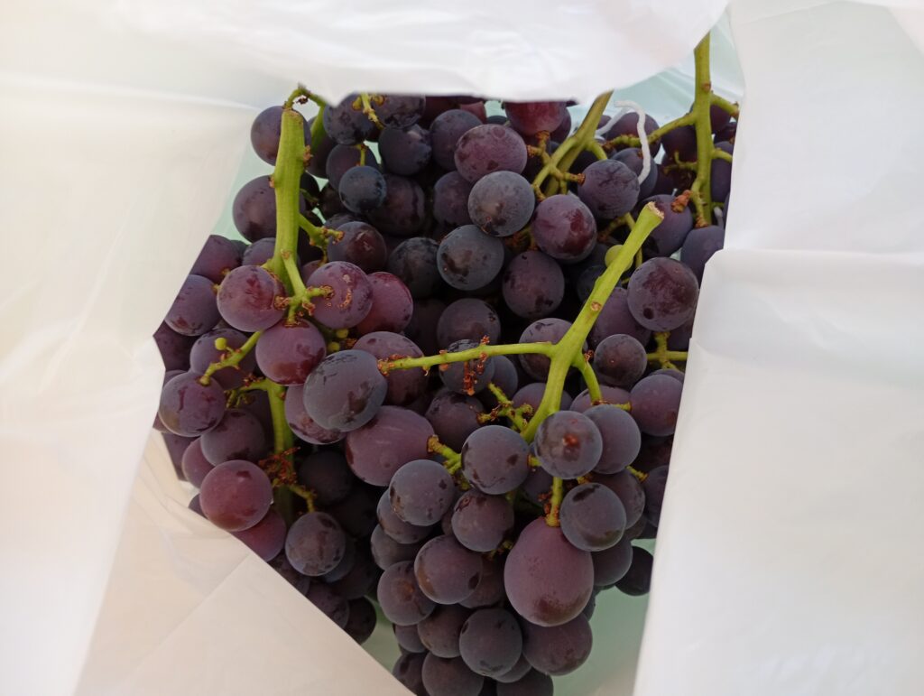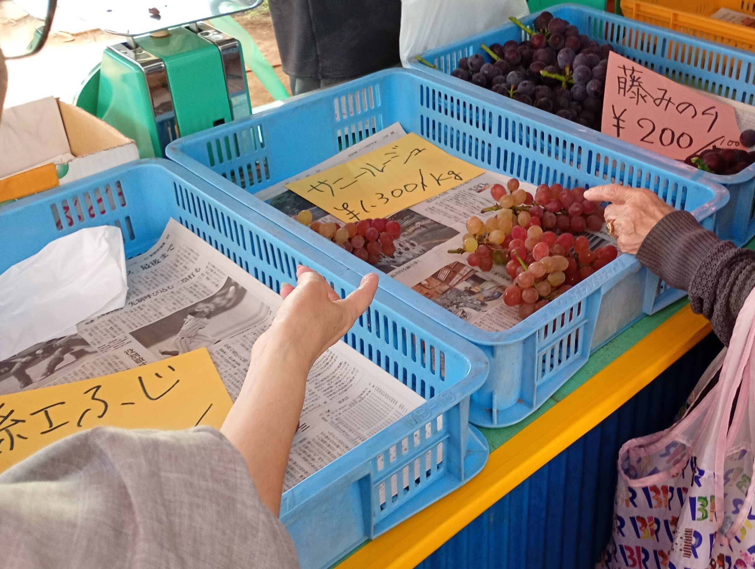 ぶどうの実入りは房によって異なるので、中をのぞきながら実入りの良さそうな房を選ぶといいかもしれません。ただ、量り売りとなりますので、写真のような実が半分しかついていない房であっても、値段的にはそんなに気にならないかもしれません。