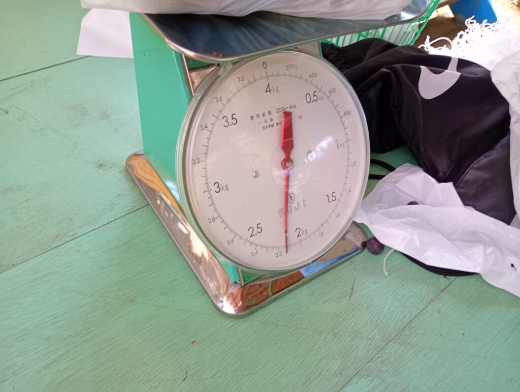 スタッフの方が計量してくれます。7房巨峰を収穫して2.1キロだったのですが、2キロに少しおまけしてくれました。お会計は、1キロ1,600円ですので3,200円でした。お持ち帰り用のかごの販売も行っていますし、地方発送も可能となっています。