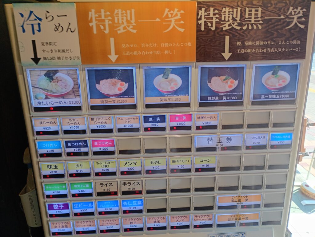 店内に入ると食券があります。今回オーソドックスに一笑らーめん920円を注文してみました。