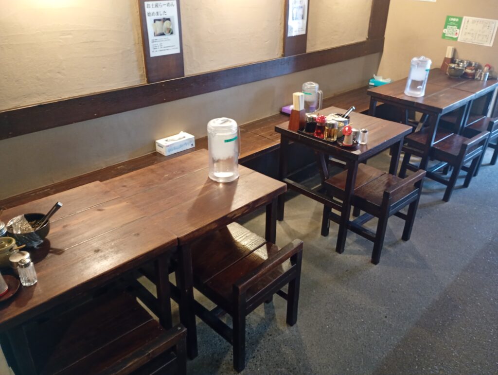 お店の方に許可を頂き店内を撮影させていてだきました。テーブルは4人席が2つと2人席が1つ、また、カウンターは6席あります。