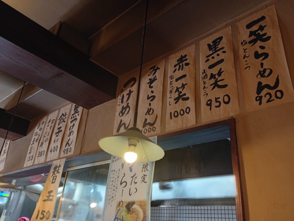 メニューは以下のとおりです。最近は成増周辺だとラーメンは1杯1,000円を超えることが多いので、1,000円以内の値段が多いのがありがたく感じます。