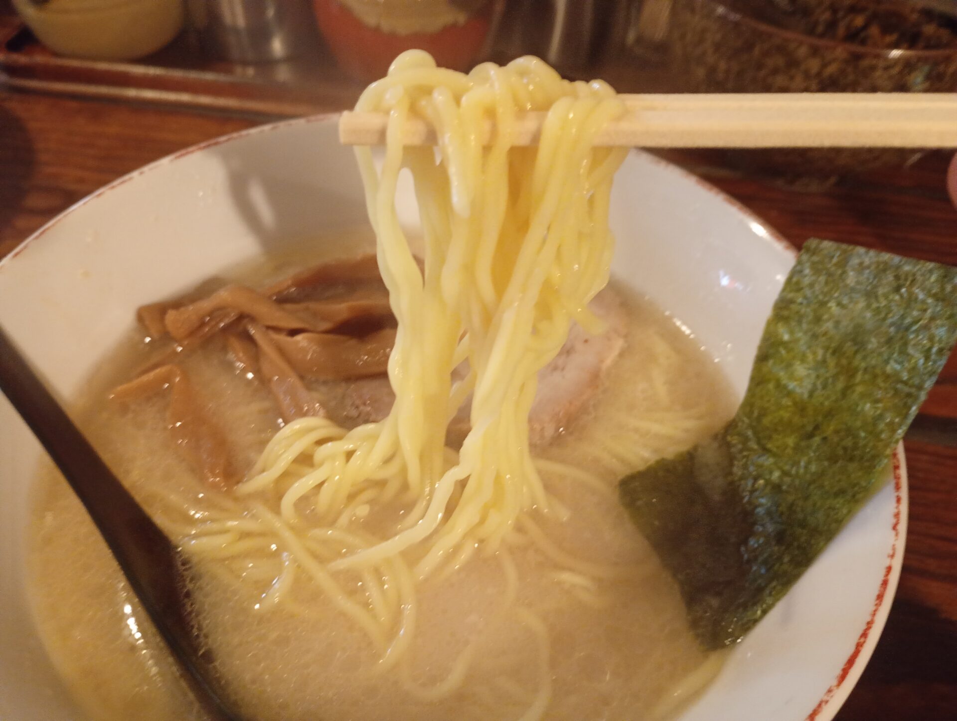 濃厚でクリーミーな豚骨スープが麺によく絡み、深いコクと旨味が魅力の抜群の一杯でした。