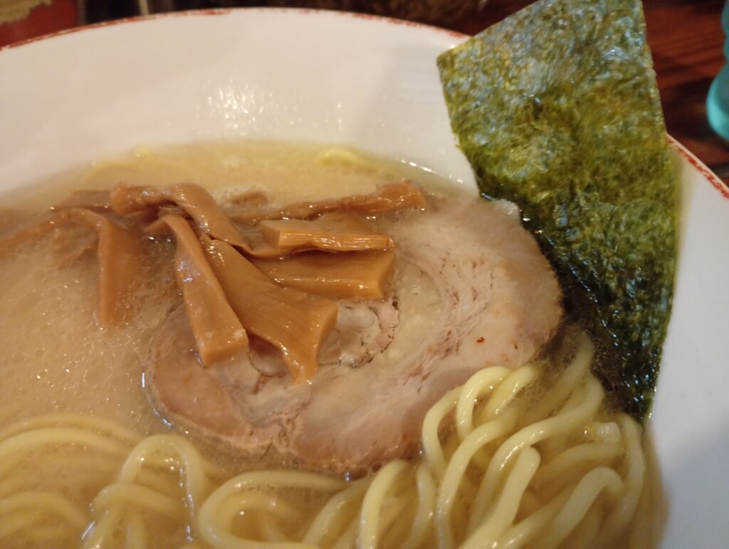 トッピングはめんま、チャーシュー、のりがのっていました。