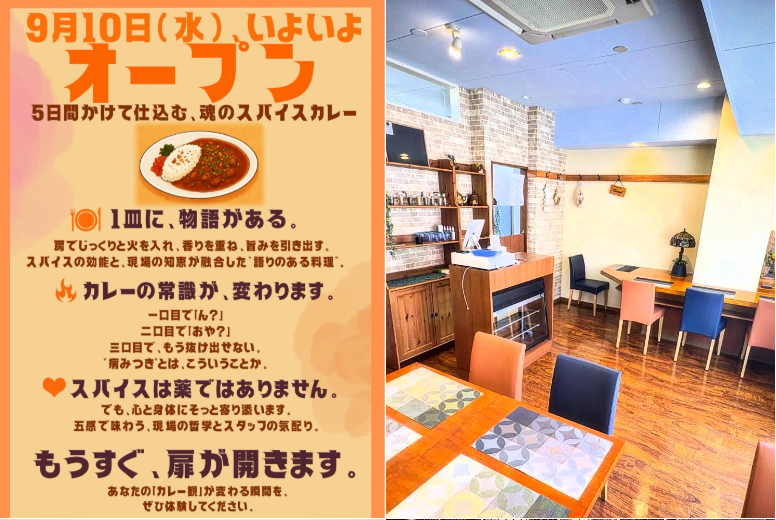 カレーの王国高島平に、2025年9月10日㈬熟成スパイスカレー「エンドルフィン」さんが高島平8丁目の前谷津川緑道沿いにオープンします。もともとは大山西町にて「ふらっと」さんというお店を出されておりましたが2025年1月31日にお店を閉め、今回は高島平に「エンドルフィン」さんとして新しくオープンとなります。