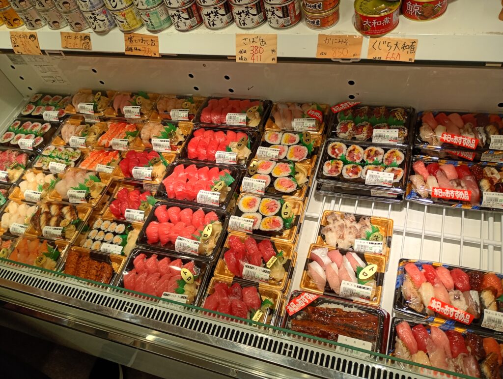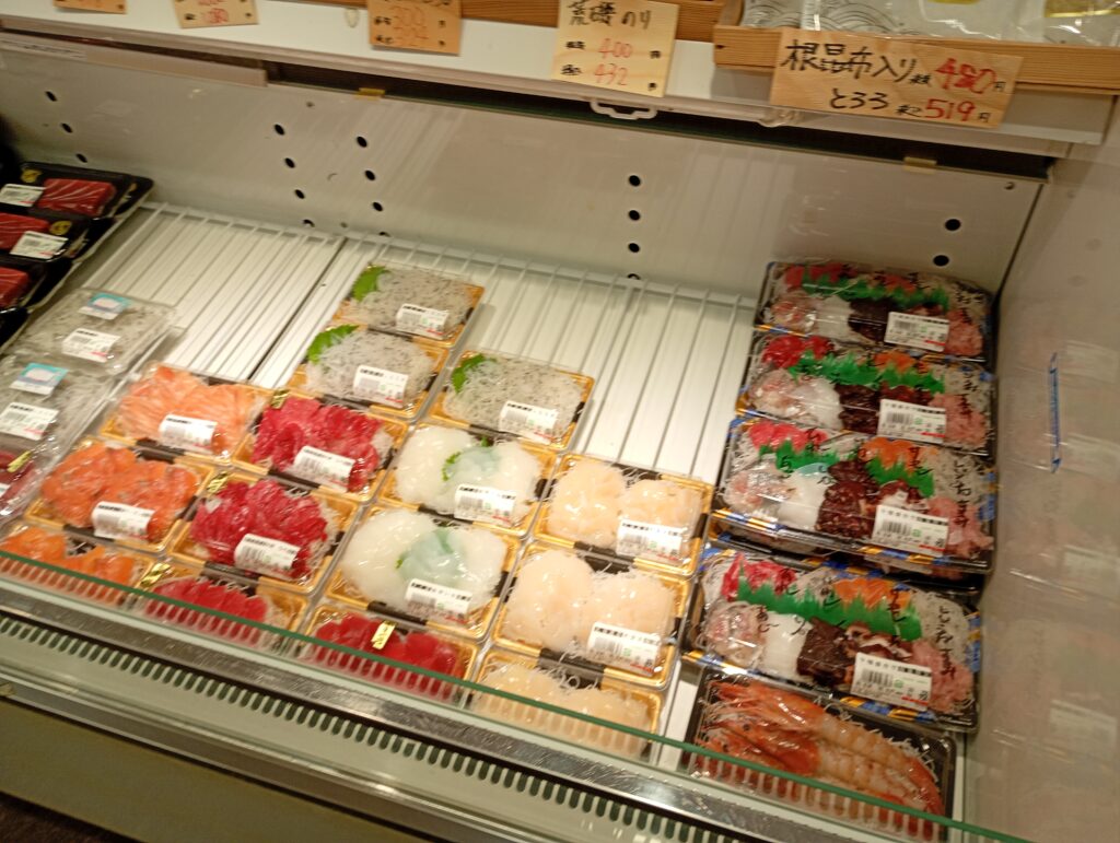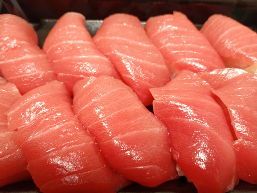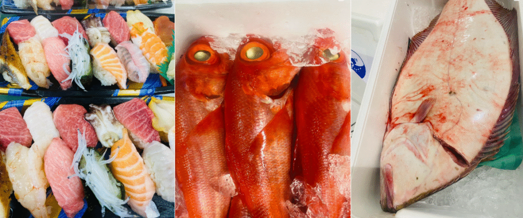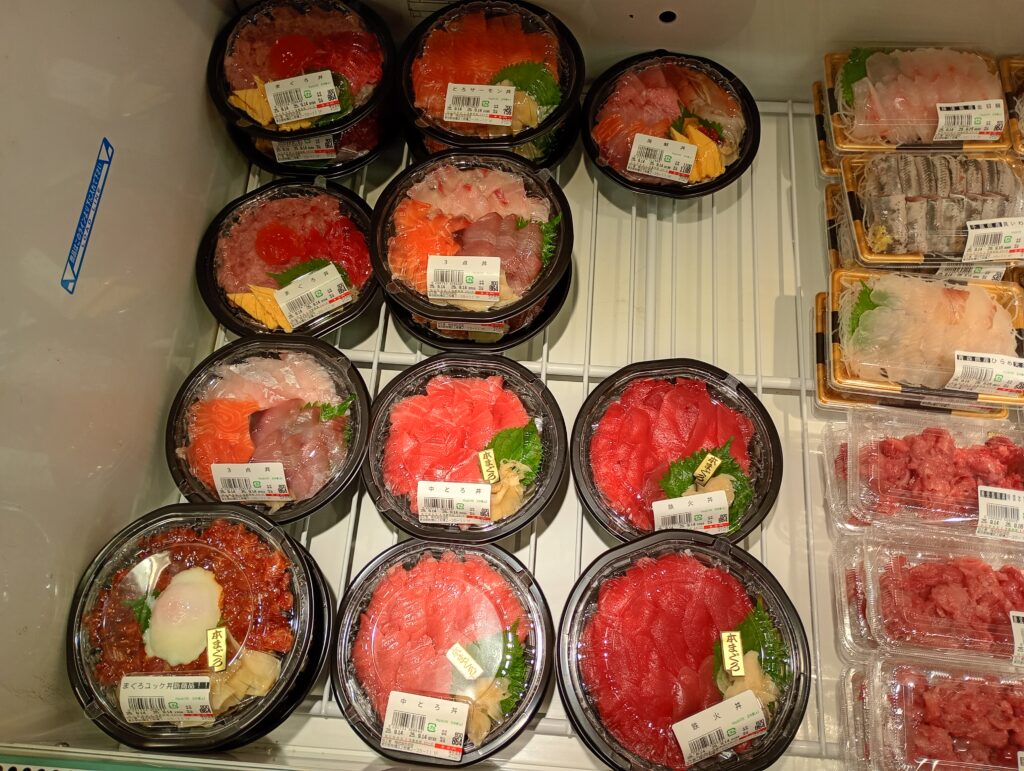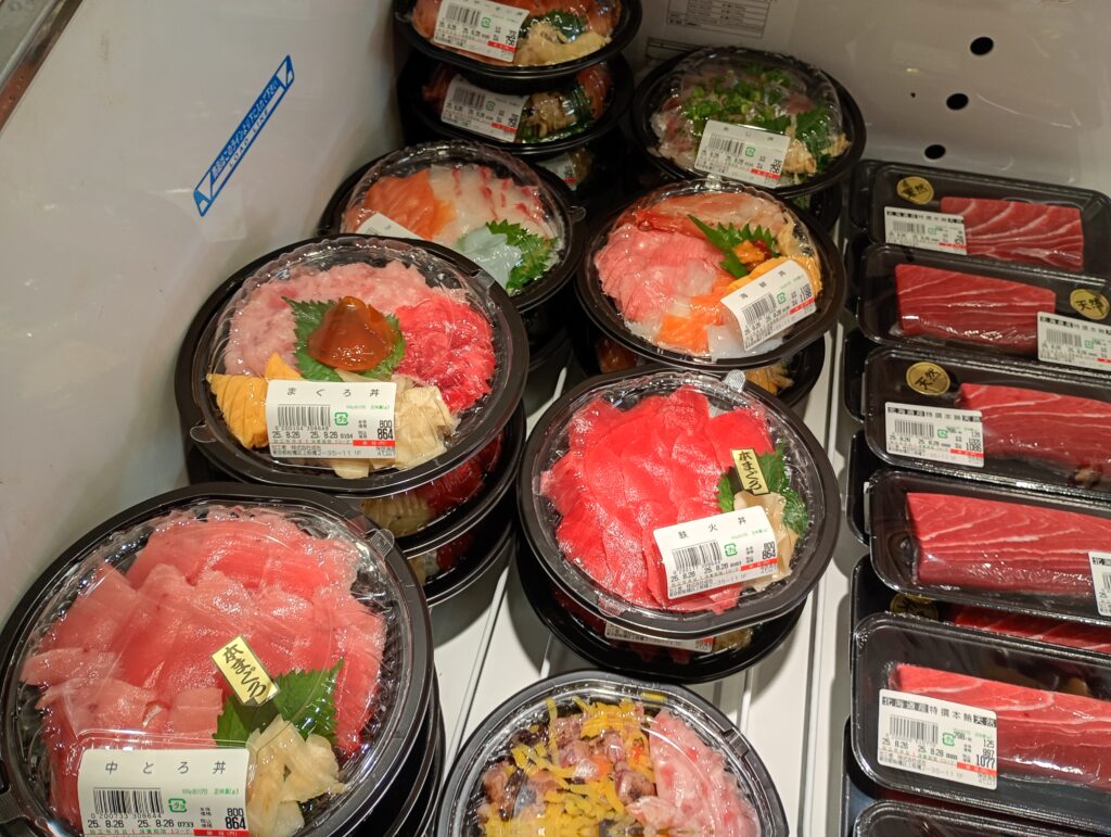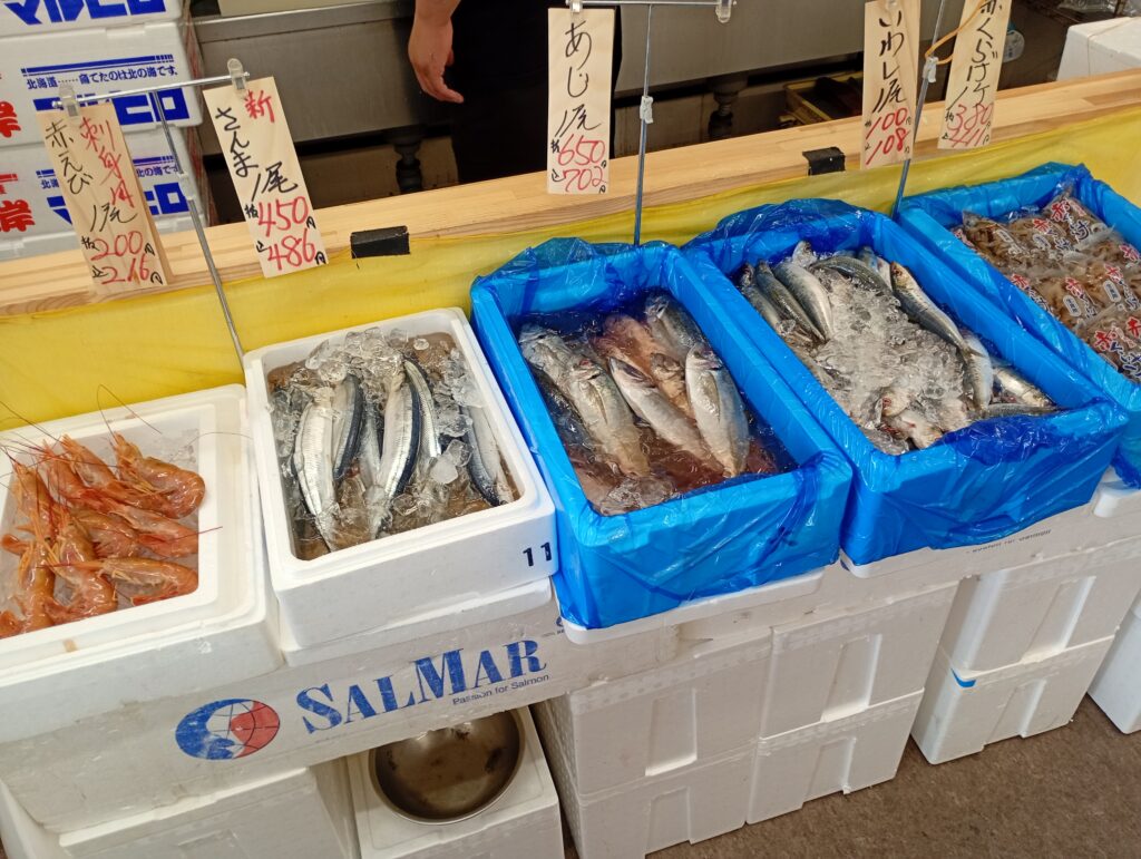 水曜日と日曜日は市場が閉まっていることもあり、朝からお寿司や海鮮丼の仕込みができるみたいで、他の日に比べて早い時間から品揃えが豊富です。