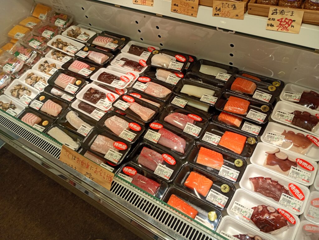 お刺身のさくもスーパーで購入する値段よりも安い印象ですし、鮮度が高いので身にハリがありツヤツヤしています。最近は、街の魚屋さんが少なくなってしまっていますので、刺身を購入しようと思うとスーパーが中心になるのですが、やっぱり豊洲で朝に仕入れた鮮魚はおいしそうですね。