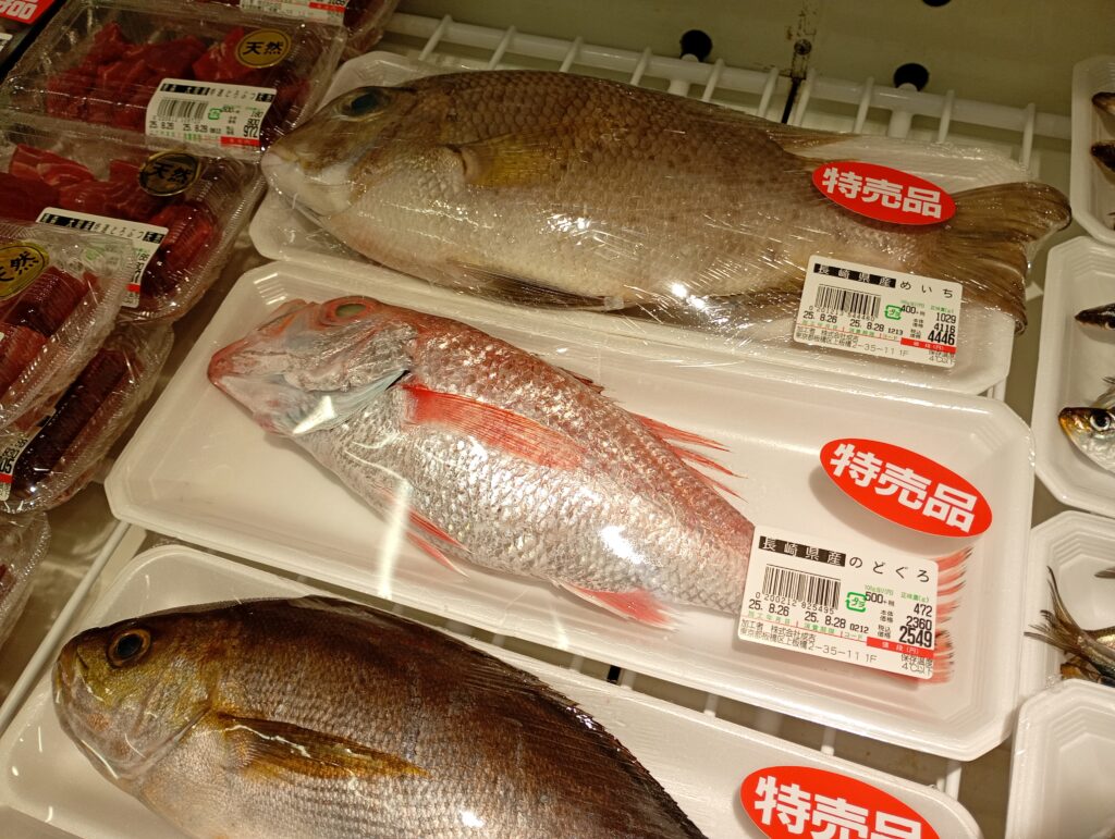「のどぐろ」や「めいち」等、一匹で売っている魚もあります。こちらはお願いすれば捌いてくださるそうです。また今度来た時に購入してみようと思いいます。