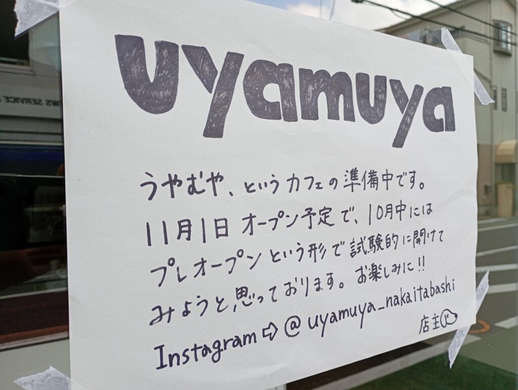 11月1日にuyamuyaというカフェがオープン予定だそうです。